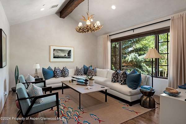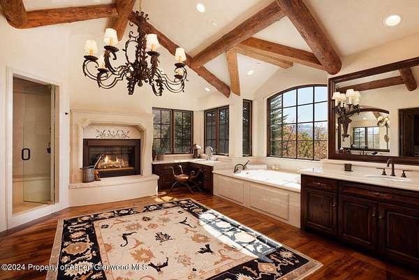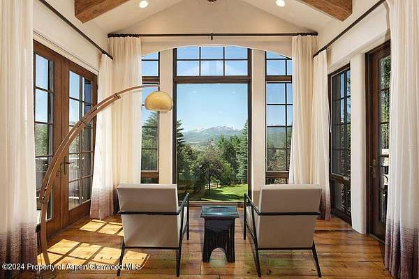Experience the pinnacle of Woody Creek. This incredible 12,191 square-foot home features fine finishes and custom craftsmanship, accented by contemporary decor. Located at the top of Aspen Valley Downs, this elegant mountain estate is comprised of six bedrooms, six full and two half bathrooms in a truly sensible floor plan. Throughout the home, wall-to-wall and floor-to-ceiling windows and soaring ceilings perfectly frame the silhouettes of the Elk Mountain range spanning from Independence Pass to Mount Sopris, including all four ski resorts and spectacular 14,000-foot Capitol Peak. Situated 15 minutes from Aspen, this private 17+ acre property includes a creek accented with waterfalls, a private pond, mature trees, lush landscaping and gently rolling pastures bordered by protected public lands. The interior features walls and arches inlaid with stone, hardwood floors, ceilings dramatically accented with dark wood beams and the inviting warmth of seven fireplaces. Vast living and dining areas are complemented by a stately media room complete with a full wet bar, pool table and big screen TV. A dream kitchen that comfortably accommodates two ovens, two refrigerators and two dishwashers is perfectly suited for entertaining. The master suite includes an office, workout room, large walk-in closet, fireplace, direct access to the household's elevator, a coffee bar and mini fridge plus an adjoining master bathroom complete with its own fireplace, steam shower and soaking tub. Each guest suite has an en-suite bathroom with its own private deck or walk-out patio with all fully above grade space. The property's three-car garage provides private access to a one-bedroom apartment/caretaker's quarters complete with a full kitchen plus washer and dryer. 120 Running Mare is a beautiful and classic Robert Trown home. One of the last of its kind, new home size restrictions ensure that this 12,000+ sf sanctuary is a rare ownership opportunity in the Aspen area. The home was built with incredible integrity and has been recently refurbished with contemporary finishes and critical maintenance updates that have wholistically improved the home including a new roof, windows, wood floors and most operating systems. This one of a kind mountain escape offers a unique opportunity to own authentic mountain living just 15 minutes from Aspen.