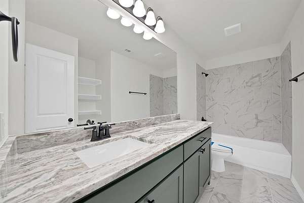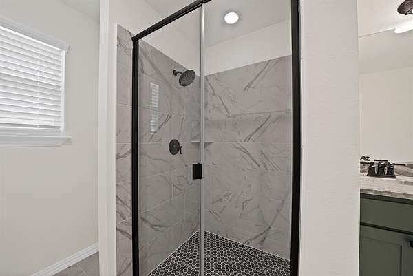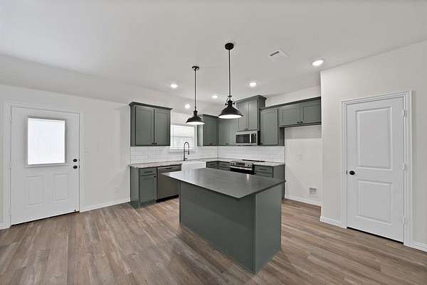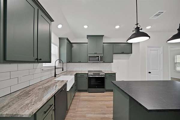 This home comes with landscape and sod package, upgraded GE slate appliances, farmhouse fixtures (black), and concrete driveway.