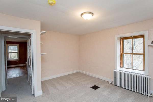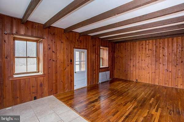 This three bedroom farmhouse is sitting pretty on a large farm parcel. The setting is very special and includes an old barn. The landlord allows the use of a couple acres for the tenant. The house has a country kitchen, living room and family room, with pipe for a woodstove. Charming features include the newel post and railing up the stairs to the second floor. New carpet and refreshed wood floors plus newer flooring in the kitchen enhance the home. The upstairs bedrooms are all joined by an open room, great for TV or study/studio space. No pets are allowed, however if you have agricultural pursuits the landlord may be able to accommodate them. The parking area is large, the tenant can have use of barn space, and then there is a storage building behind the house that is included. Across the gravel road is the Rapp Creek and the natural stone walls the area is famous for. A world away but near groceries, dining , schools and stores.About 20 minutes north of Doylestown and equidistant to the LV and 2 NJ bridges.