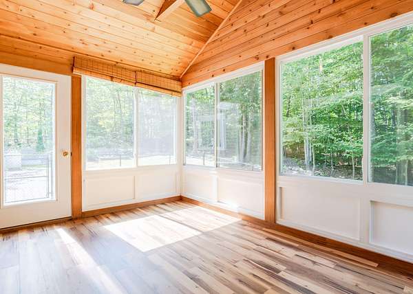 Welcome to a truly magnificent property, and a rare opportunity you won't want to miss. I'm thrilled to present this spectacular, nearly new home in a highly sought-after location in Casco, Maine. Built in 2019, this residence offers the perfect blend of modern construction and classic Maine charm. With 3,200 square feet of meticulously designed living space, this home provides ample room for family, friends, and guests. The layout is a masterpiece of open-concept living, seamlessly connecting the main living areas for both entertaining and everyday life. Step inside and be captivated by the warmth and elegance that define this home. The main floor features a spacious, sun-drenched living area that flows into the gourmet kitchen, perfect for the home chef and a private office room. With 3 bedrooms and 3.5 baths, everyone can enjoy their own private sanctuary. The primary suite is a true retreat, offering a spa-like ensuite bath and plenty of closet space and an extra large family room over the garage. Need more space? Expand into the full daylight basement. But the appeal doesn't stop at the main house. This property is a testament to the Maine lifestyle, both inside and out. Enjoy your morning coffee on the charming covered front porch, or step out to the expansive sunporch, a perfect spot to relax and take in the tranquility of your surroundings. Set on 4.9 private acres, this home is a nature lover's dream, providing privacy and a serene setting. And for the car enthusiast or hobbyist, the large, heated, open 3-car garage offers an abundance of space for vehicles, storage, and a workshop. What truly elevates this property is its incredible access to Thompson Lake. You will have 200 feet of shared waterfront, providing a direct connection to one of Maine's most pristine and popular lakes. Additionally, there is a common loading dock, making it easy to get your gear and guests on and off the lake.