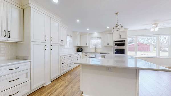- Built-In Electric Oven, Cooktop, Dishwasher, Microwave, Refrigerator, Stainless Steel Appliance(s)