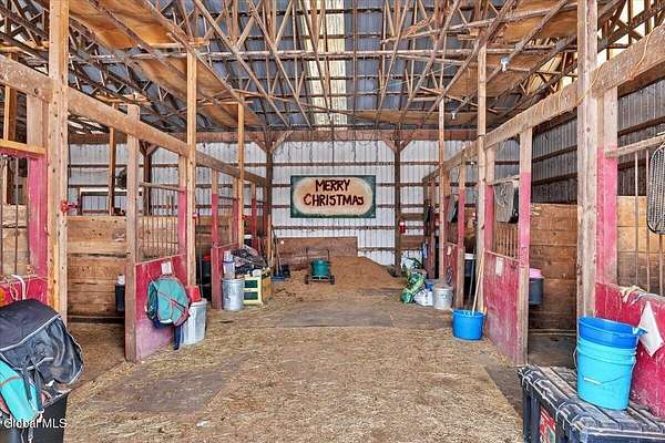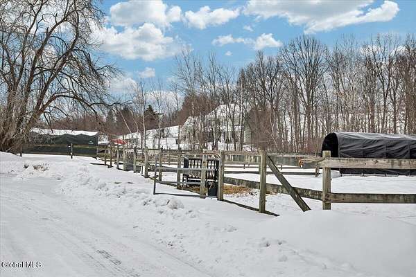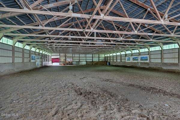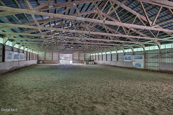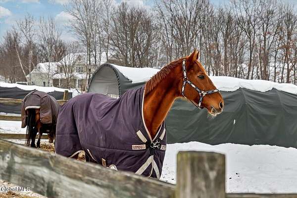 Discover a rare opportunity to own a versatile 16+ acre operational equestrian estate designed for professional boarding, training, and beyond. Located in the heart of the Capital Region within just 45 minutes of Saratoga Springs & the historic Saratoga Racetrack, this scenic property offers the perfect blend of functionality and charm. With professional facilities for up to 27 horses, this property offers 2 barns featuring a dedicated well, tack rooms, and even a convenient half-bath and a kitchenette area, as well as many additional storage areas. The large indoor riding arena, multiple fenced-in paddocks and outdoor riding areas provide versatility for training and horse care regardless of the weather. This unique property with acres of picturesque land, complete with a tranquil pond and a flowing stream offer limitless potential. While currently an operational boarding and training facility, this property offers vast possibilities for diversification, as it is a stunning backdrop for weddings and private events. Make this your home or utilize the potential for a house rental, an Airbnb or boutique farm-stay experience as well as ideal for a private hobby farm or estate. A must-see to appreciate all this property has to offer!!