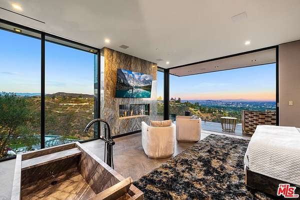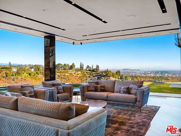 Seller accepts crypto! Experience the pinnacle of lavish splendor and quiet comfort at La Fin, or The End, aptly named as the ultimate, final example of modern decadence and refinement; the be-all and end-all experience in one of the world's most famous and exclusive enclaves. Sited on a two-acre parcel, this magnificent residence offers 12 spacious bedrooms, 17 bathrooms, remarkable amenities, and brilliant panoramic views of Los Angeles. Just beyond the gated motor court, proceed down to the oversized glass entryway to one of the most beautiful and opulent homes the globe over. A spiral staircase surrounds a stunning 44-foot chandelier made of 55,000 crystals, a showstopping centerpiece yet just one of the impressive custom lighting sculptures throughout the home. The main level features a custom stone bar that flows into the formal living area with a massive hand-carved stone latticework fireplace. All furniture was custom-made for La Fin by Italian luxury brand La Contessina. Motorized Fleetwood pocket doors open to the infinity-edge pool with a striking 23-foot LED screen that rises at the touch of a button and a 30-person lounge area with fire pit. The lower level provides a 6,000-square-foot entertainment area with lofty 18-foot ceilings, custom bar, commercial-grade catering facilities, 1,000-bottle wine cellar, cigar lounge, ice-cold vodka tasting room, and a jaw-dropping automated six-car vehicle elevator display. Additional amenities on the lower level include an outdoor lounge area, luxury fitness center with rock climbing wall, spa, steam room with backlit onyx, massage room, and sound-proof cinema. The second level features a grand primary suite with Italian hand-crafted floor-to-ceiling oak cladding, lounge area, coffee bar, spa-like bathroom with Calacatta Gold marble, massive 100-square-foot shower, solid marble vanity, dual showroom-style walk-in closets, and private wraparound balcony with sweeping views, spa, fire pit, and TV. The rooftop deck offers additional outdoor/entertainment space with built-in seating, fire table, video screen, elevated spa, and even more incredible vistas. Staff residences and a detached guest suite offer ample space. Fingerprint technology and security command center provide the utmost privacy and safety. The meticulously designed and curated La Fin is a once-in-a-lifetime Bel Air estate that can only be admired but never replicated.