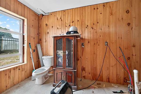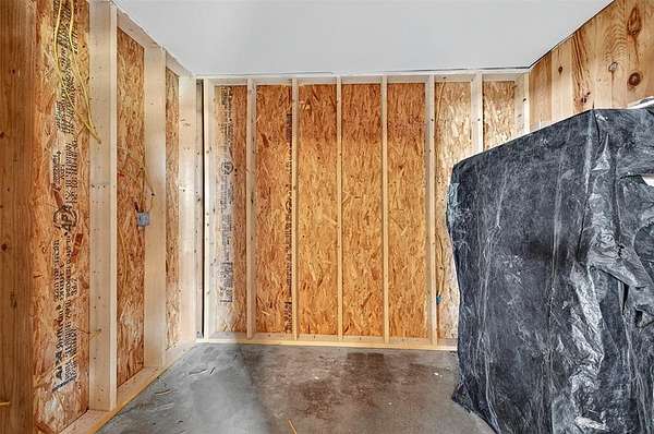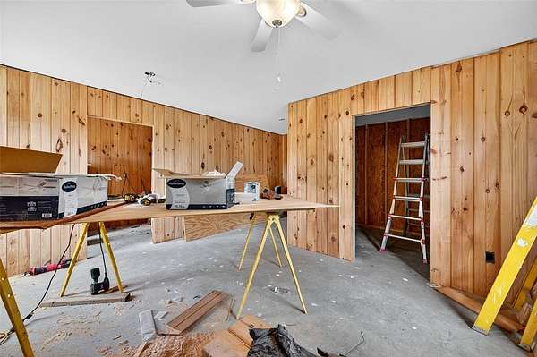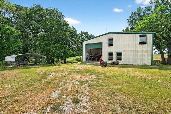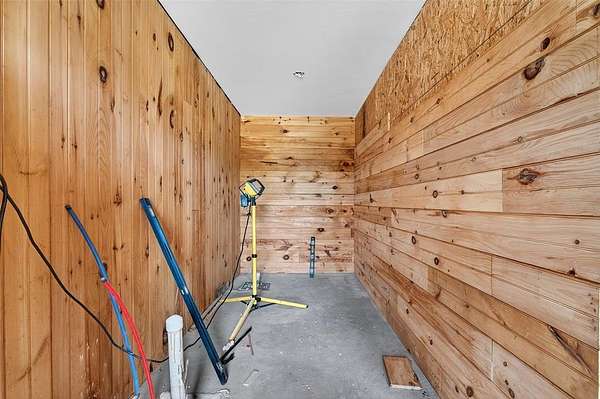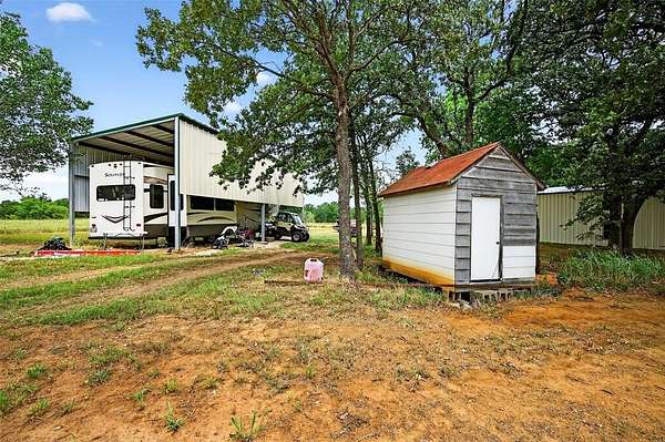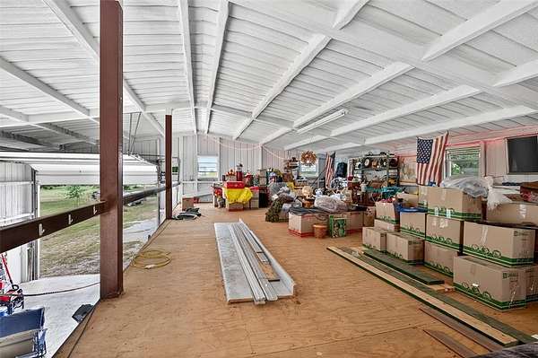 Tucked away, not visible from the road, the property has an unfinished barndominium offering incredible potential. One side is equipped with full RV hookups, making it immediately usable, while the downstairs interior living space is already framed and plumbed for 2 bathrooms and a primary bedroom. It offers a flexible layout designed for two to three additional bedrooms and 1 additional bathroom upstairs. Finish it out to match your vision and create a custom home tailored to your lifestyle.