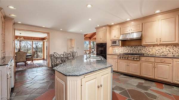 Welcome to this exceptional 3,492 sq. ft brick ranch, perfectly situated in one of the area's most desirable neighborhoods on 2.4 acres. This home blends timeless craftsmanship with generous living spaces, offering comfort, privacy, and an ideal layout for both everyday living and elegant entertaining. Highlights include a fully remodeled kitchen with ample cabinetry along with a custom cracked tile backsplash by Fioriware and granite counters.There is a sub zero refrigerator, Zline gas cook top, dishwasher, double ovens, micro-wave and a wine refrigerator. The kitchen offers a large island for dining plus an area for a kitchen table. The laundry closet is located in the kitchen for convenience. The spacious family room has a vaulted wood ceiling and expansive windows on the west side of the home. The dining room offers large windows that look out onto the rear of the home along with access to the all season room.The living room is spacious and has a gas fireplace. There is a charming half bath near the foyer. The study offers may built ins for extra storage. The primary bedroom suite is very spacious with large windows and a dressing area that includes his and her closets. The bathroom has been updated with a dual vanity, walk in shower, a Kohler whirlpool tub and marble flooring. The home has 3 large guest bedrooms and 2 full bathrooms. The bathrooms have been updated and one has a skylight. There is a spiral staircase that leads into the basement family room with great windows for natural lighting. The unfinished side of the basement has a 2 car garage (both new doors) and an abundance of storage space. A new roof and copper gutters were installed in 2023.The exterior paint on the house and the all season was completed in 2022.Most of the doors and windows (Pella) have been replaced.The sellers added a whole house generator and a 2 car detached garage with attic storage.The home has 3 separate HVAC systems and 2 water heaters. There is a whole house generator.