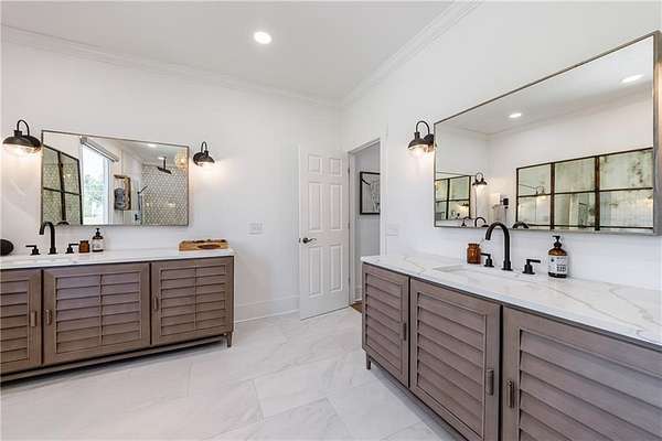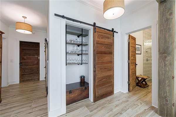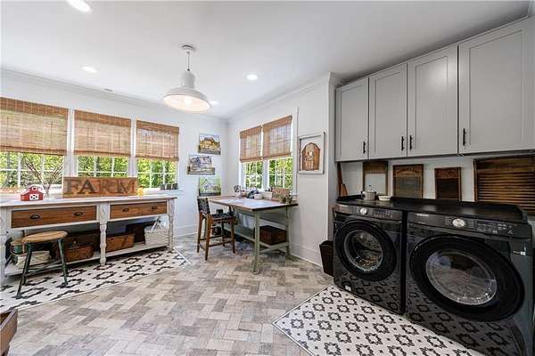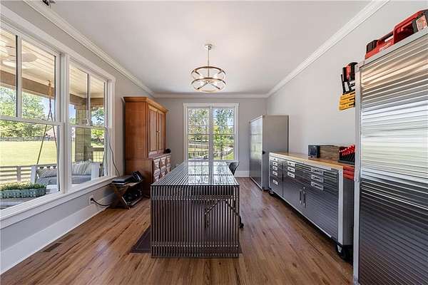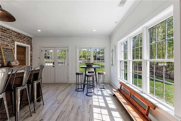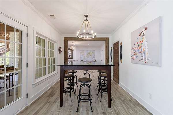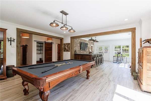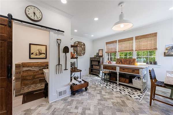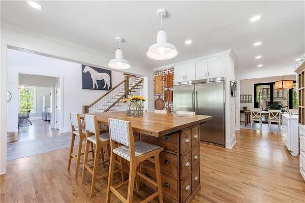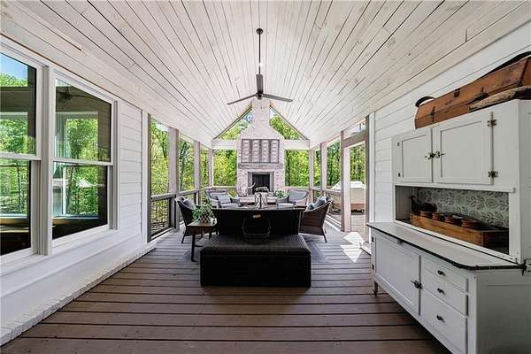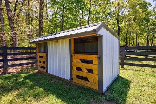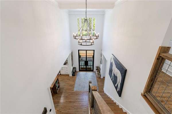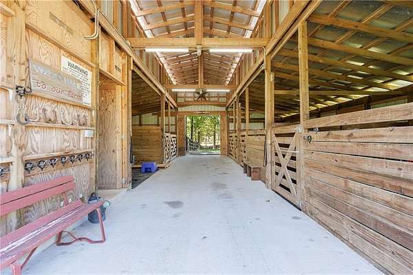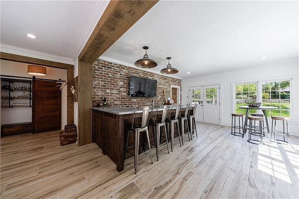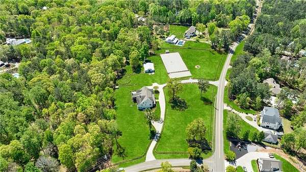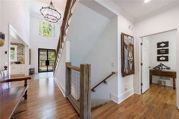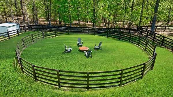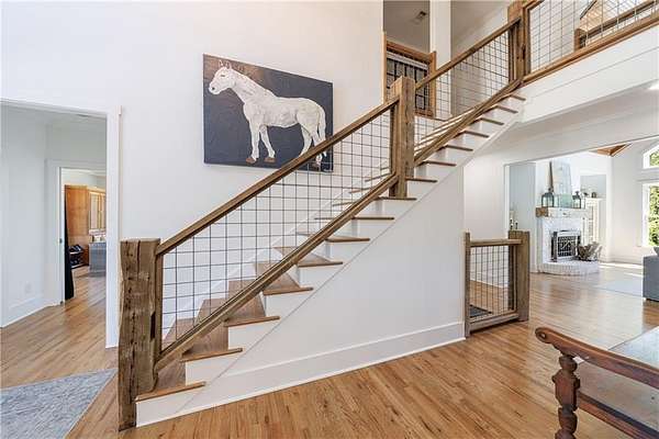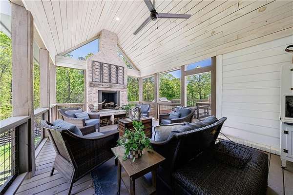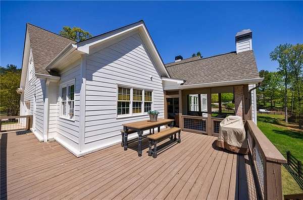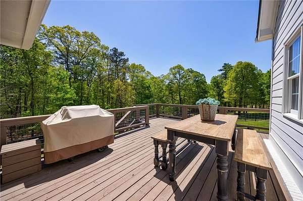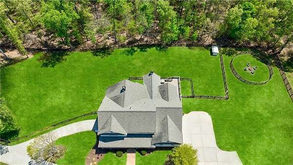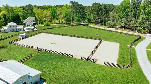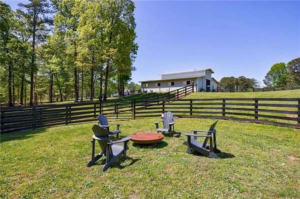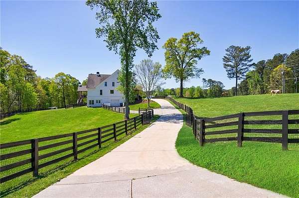 DO NOT CALL SELLER- RE-LISTING Situated in the heart of the countryside, this high-quality farmhouse is designed to offer both rustic elegance and an exceptional equestrian lifestyle. The home features a luxurious primary suite conveniently located on the main level, offering ease and comfort for everyday living. The exterior is finished in a charming combination of brick and concrete fiber siding, with timeless farmhouse character. A welcoming covered front porch and a spacious rear porch set the tone for relaxed country living-the rear porch complete with a cozy fireplace, reclaimed solid beam mantle, and vaulted shiplap ceilings. A large wrap-around deck extends the living space outdoors, while a terrace-level garage provides additional utility. A side-entry garage and fully fenced backyard add to the property's practicality. All porches and the deck feature wire railing for both function and flair. The rear porch also boasts a concrete hearth for chilly evenings. Inside, the main level showcases hardwood flooring throughout, a custom staircase with reclaimed newel posts, hog wire spindles, and warm wood railings. The vaulted Great room is anchored by a fireplace with a beam mantle, tongue and groove ceilings, and thoughtfully designed lighting. An adjoining wet bar includes honed granite countertops, a hammered copper sink, custom cabinetry, and a designer tile backsplash-perfect for entertaining in style. The kitchen is a chef's dream, updated with quartz countertops, custom shaker cabinets, tile backsplash, a generous walnut-topped island, and high-end stainless appliances from Kutch, Bosch, and Frigidaire. A porcelain farm sink and pot filler complete the space, along with tasteful pendant lighting overhead. The primary bedroom is a serene retreat, with vaulted ceilings and a walk-in closet featuring custom wood shelving and built-ins. The renovated primary bath offers marble floors, quartz countertops, a hammered copper freestanding soaking tub, and an oversized zero-entry shower with frameless glass, linear drains, and dual shower heads. Two half baths serve the main level, one of which is located in the spacious laundry/craft room and includes a custom dog shower-ideal after an afternoon exploring the property. Upstairs, you'll find four additional bedrooms, three well-appointed baths, and a private study over the garage. Each bedroom features hardwood floors, while the baths include quartz counters, designer tile, furniture-style vanities, glass shower enclosures, and pebble tile floors. The full terrace level adds even more living space with a wet bar, billiard room, game room, media room, full bath, garage, and storage room. Finishes include drywall walls and ceilings, brick accents, exposed ceiling beams, and plank tile flooring. The terrace bath features an iron farmhouse sink and a frameless glass shower with zero-entry tile flooring. The wet bar is outfitted with a Zinc countertop, composite sink, custom cabinets, and a dishwasher-ready for relaxed gatherings or lively game nights. Additional home features include barn-style doors, two water heaters, a central vacuum system, four HVAC units, double-pane vinyl windows. Equestrian Facilities This picturesque property operates as a boutique horse farm, complete with four fully fenced (four-board) pastures, a riding arena 200 x 100, regulation size round pen and a thoughtfully designed four-stall barn. The barn includes a feed room, tack room, and two attached run-in sheds, all constructed with wood walls and classic barn doors. A concrete floor runs throughout the barn, an outdoor hose bib for convenience. Offering a perfect balance of refined living and equestrian functionality, this property is an ideal haven for horse lovers, goat lovers, chicken lovers or any array of farm animals. Giddy UP to a this wonderful farm for those seeking a peaceful lifestyle rooted in the rhythm of country life. Located in the SWEET Spot -Cherokee Co.. Listed at APPRAISAL PRICE.