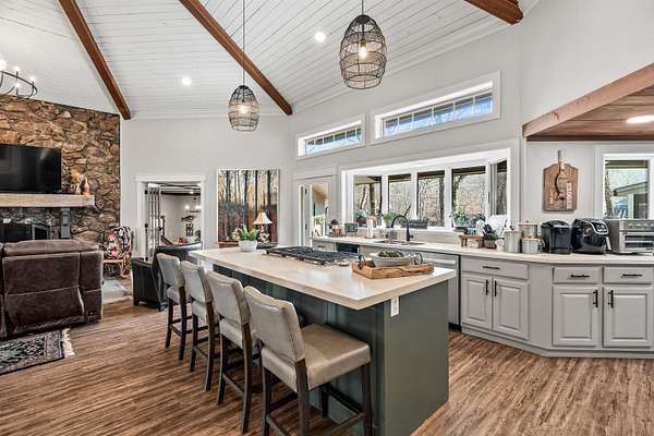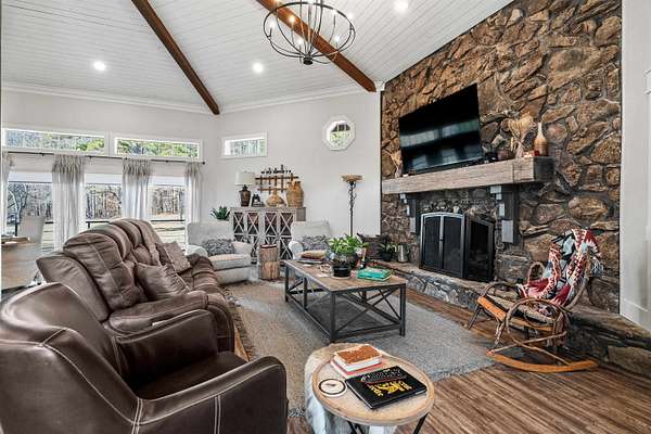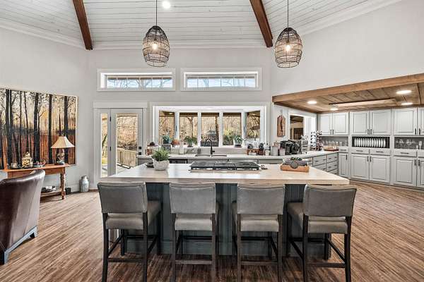 NEW PRICE! Experience the epitome of luxury living with this breathtaking riverfront home on the scenic Little Red River. Nestled on 3 expansive riverfront lots, this completely remodeled retreat offers stunning views from every room. Step inside to discover an open-concept dining and kitchen area with soaring 16' wood ceilings, and custom finishes throughout. The chef's kitchen is outfitted with durable Durasein countertops, a wine cooler, and an ice machine - perfect for entertaining. This home boasts 3 spacious bedrooms, including 2 master suites for ultimate comfort and privacy, and 3 beautifully appointed full baths. Relax in the screened porch while soaking in the tranquility of the lush, terraced landscaping that complements the picturesque riverside setting. With 2 private boat docks, this property provides easy access to water activities, making it the perfect haven for both relaxation and adventure. Whether you're enjoying the panoramic river views or the meticulously landscaped surroundings, this home offers a rare combination of elegance, comfort, and natural beauty. Your riverside escape awaits!