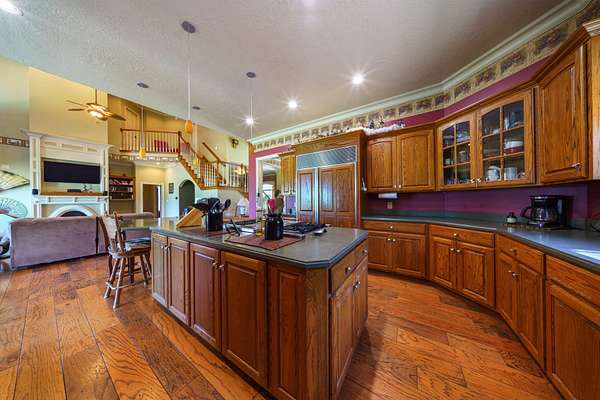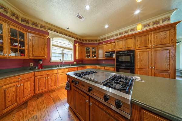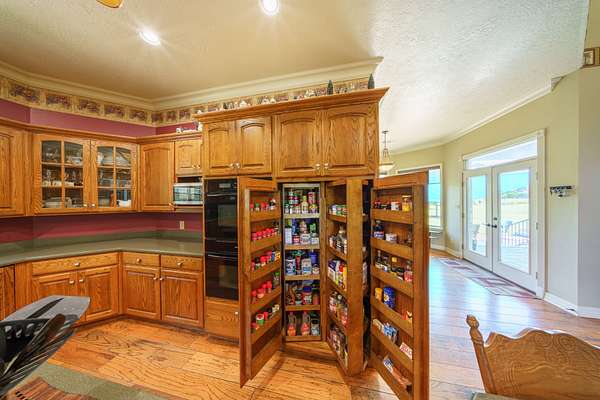 Chef's kitchen with gas stove + griddle, large pantry & plenty of cabinets