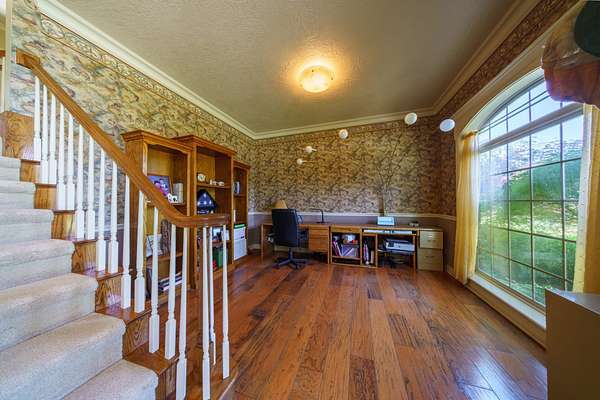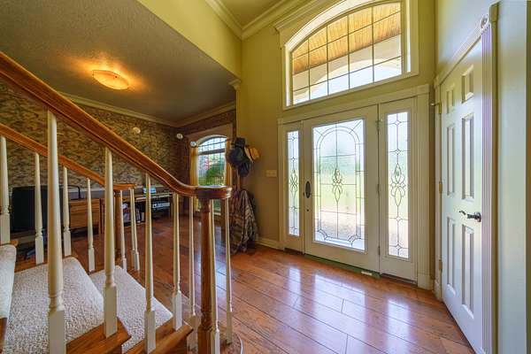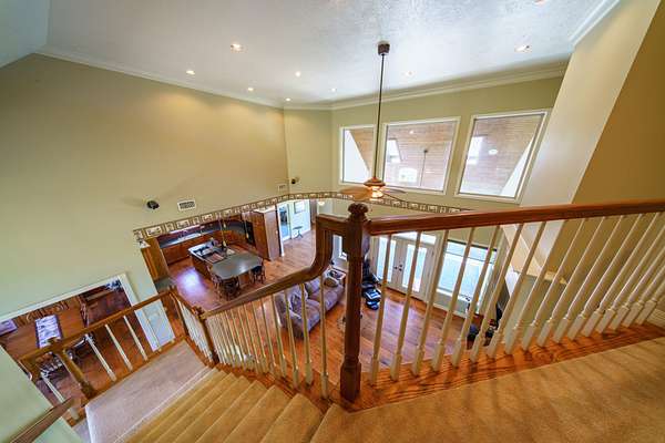 Main Level (approx. 2,365 sq ft heated/cooled):From the moment you enter, you're welcomed by a grand foyer with floor-to-ceiling windows framing the backyard, a formal dining room to the left, and a home office to the right. The heart of the home features a chef's kitchen with a large bar area, Viking propane cooktop with 18" griddle, Sub-Zero fridge, double Bosch convection ovens, and a new Bosch dishwasher. The custom oak cabinets and walk-in pantry offer abundant storage, while a plant window nook with built-in stand is perfect for growing herbs.