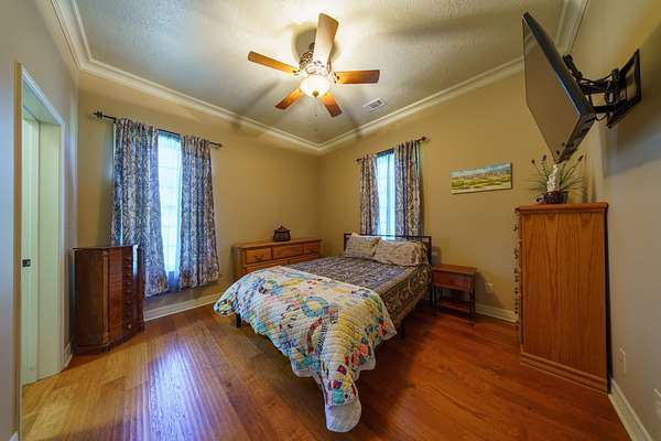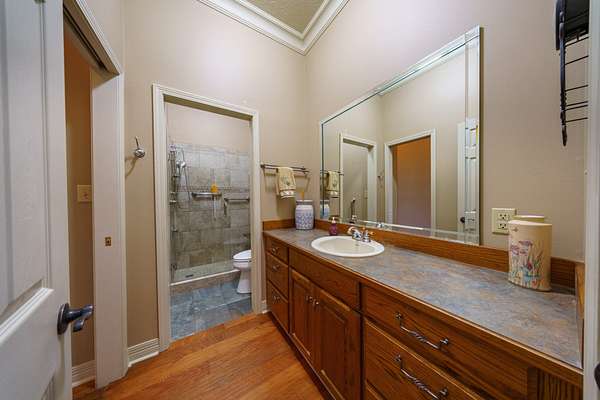 Upstairs (approx. 680 sq ft heated/cooled):Includes a sitting area, and two large bedrooms--each with private vanities and toilets, sharing a spacious central shower and both 2700featuring walk-in closets.