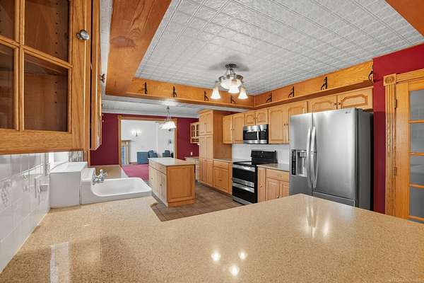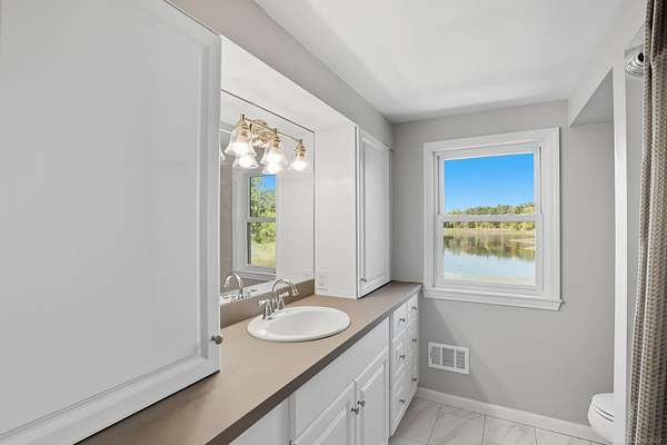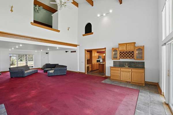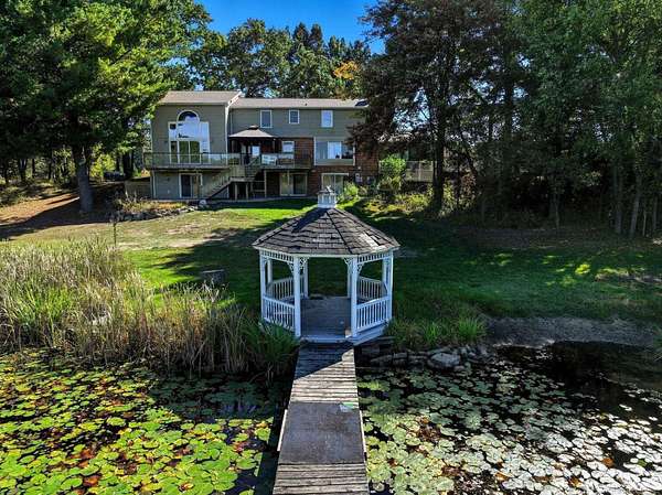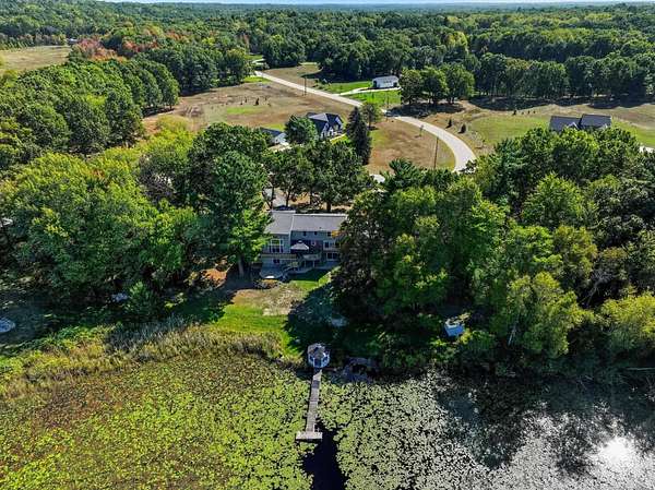 Discover this spacious colonial home perfectly situated on a rare 6-acre parcel along the shores of Grampian Lake. Offering a unique blend of privacy, space, and breathtaking water views, this property is truly one of a kind. Step inside and be captivated by the expansive great room featuring soaring 20-foot ceilings and large windows that frame the lake and flood the space with natural light. The open, flowing layout is ideal for both everyday living and entertaining, complemented by expansive wood decking that invites you to relax and take in the peaceful surroundings. The home boasts generously sized bedrooms, including a massive primary suite designed as a true retreat. A finished walkout basement with a convenient half bath provides additional living space, perfect for recreation, a home gym or work space. Outside, multiple outbuildings add versatility to the property, including a pole barn with partially finished, non-permitted work--ideal for storage, hobbies, or workshop space. With its unmatched acreage, serene lake frontage, and versatile living spaces, this property offers endless possibilities for those seeking both comfort and opportunity.