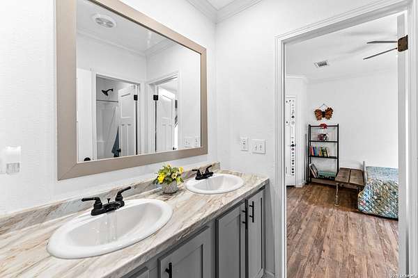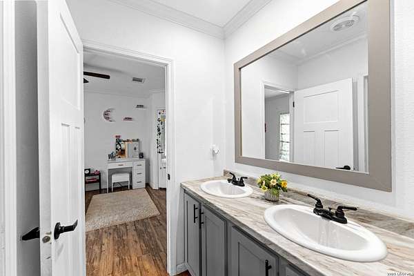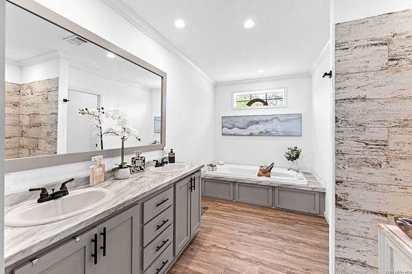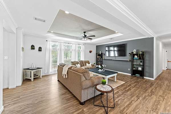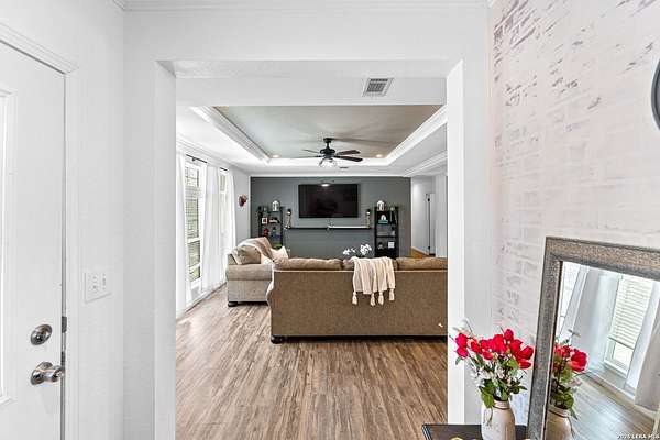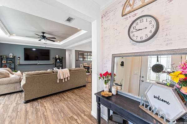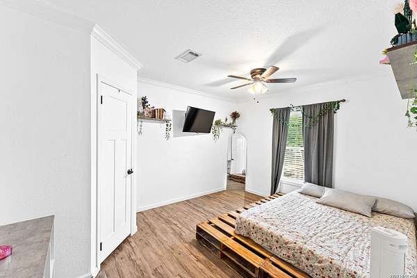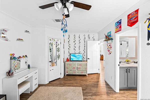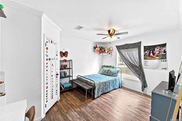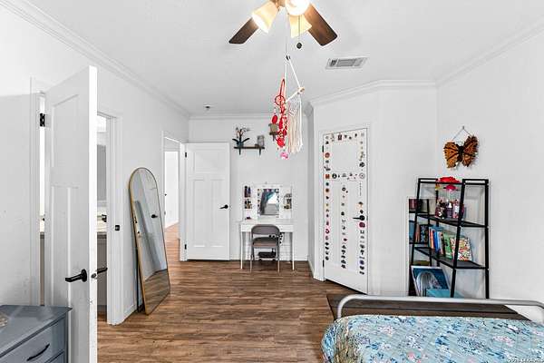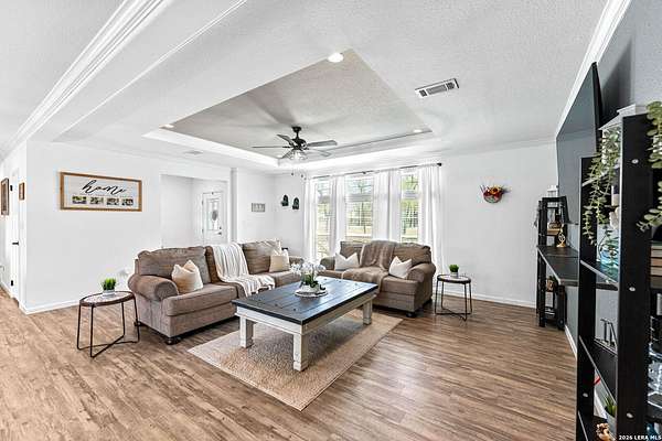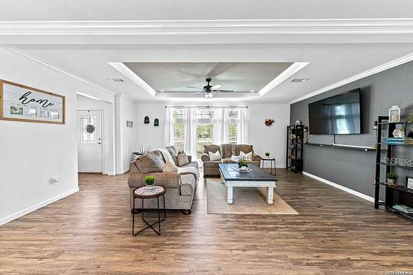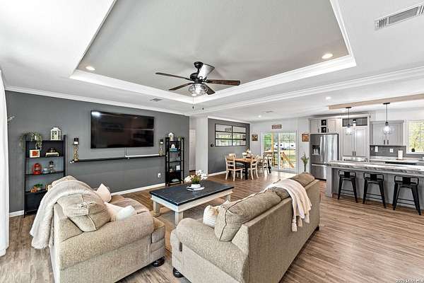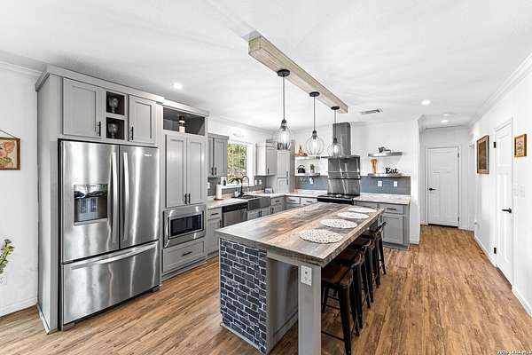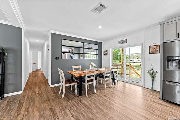 Welcome to this beautifully well-maintained 5-bedroom, 3 full bathroom home situated on over 2 acres of unrestricted land, offering the perfect blend of privacy, comfort, and endless potential. With over 2,300 square feet of thoughtfully designed living space, this move-in-ready property is ready to welcome its new owners. Located within a private code-gated community, the fully fenced property provides both security and peace of mind. Exterior features include a durable metal roof, updated siding, a 2-car carport, and an additional storage shed for added convenience. Inside, you'll find vaulted ceilings, luxury vinyl plank flooring throughout, and recessed lighting throughout creating a bright, open, and modern feel. The spacious kitchen is designed for both everyday living and entertaining, featuring stainless steel appliances, a stainless steel hood range, stylish glass tile backsplash, and an oversized island ideal for gathering with family and guests. The primary suite offers a private retreat with custom shelving in the walk-in closet, a tiled walk-in shower, soaking tub, dual vanity sinks, plenty of storage cabinets and sleek black fixtures that carry throughout the home. Four additional spacious bedrooms each feature walk-in closets, with a convenient Jack-and-Jill bathroom connecting two of the secondary bedrooms. Enjoy outdoor living at its finest with a spacious 25x15 artificial turf area, perfect for comfortably gathering with family and friends to watch sporting events, boxing matches, or movie nights under the stars. The backyard also features a beautifully graveled seating area with a cozy fire pit, creating the ideal space to relax and entertain. With ample room remaining, there is plenty of space to design and create your own private backyard oasis. The possibilities are endless with having the ability to build a casita, an in-ground pool, barndominium, or workshop, or anything your heart desires on this beautiful slice of Texas. A rare opportunity to own acreage, privacy, and modern upgrades all in one exceptional property! Schedule your private showing today before it's gone.