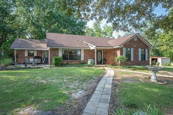 This property is hidden among the large trees and way off the county road. When you drive up and approach the pond on the left, look between the trees to see the house. The pond is about 12 feet deep in some areas and stocked. This is a very peaceful setting. House is on septic and has well water from the wilcox aquafir and is approximately 420 feet deep. Farm land surrounds this property. Sitting down on the bench by the pond after a long day will definitely relax anyone. Property is 2 and a half miles from the schools and close to all shopping. You really need to see this property to appreciate all it has.
