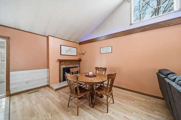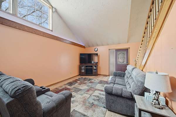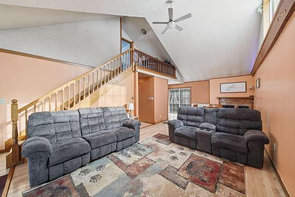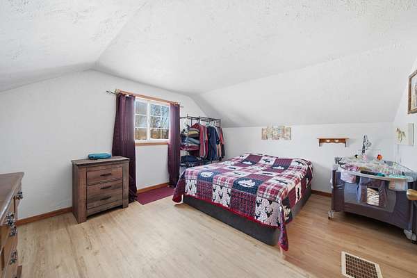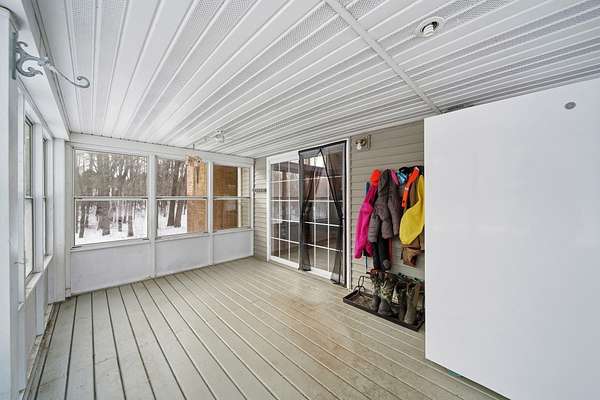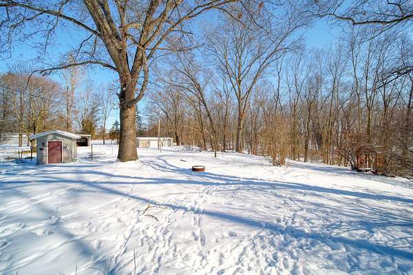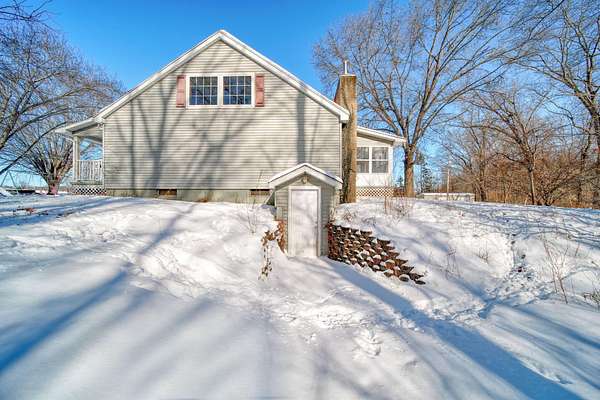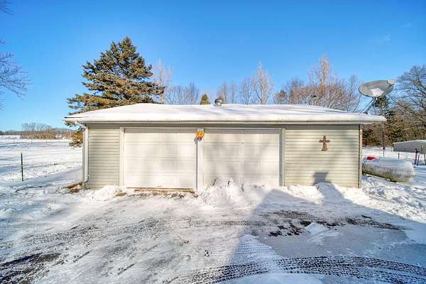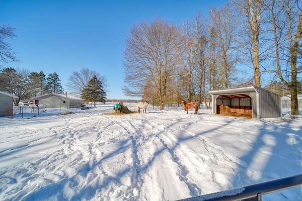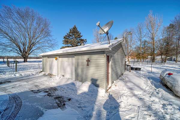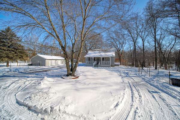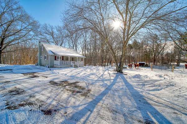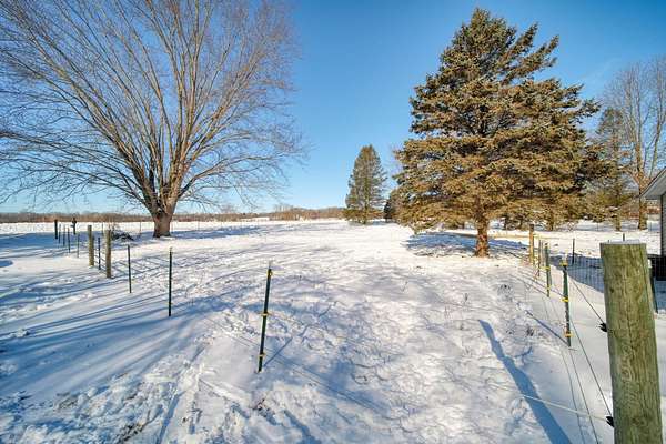 Welcome to this cozy 2 bedroom, 1 bathroom home with a partially finished walkout basement with an additional non-conforming bedroom. This home features a open living room and dining area with high ceilings, natural light and a fireplace. The Kitchen is open and spacious with plenty of storage. The 3 season room has the perfect view of large mature trees making you feel like you're in your own private retreat. This home offers over 6 acres, a pole barn, 2 car garage, and fenced in area for your animals. You won't want to miss this move-in ready home and hobby farm. Call today!