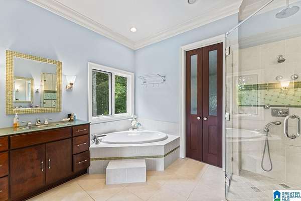 - Linen Closet, Recess Lighting, Separate Shower, Separate Vanities, Shared Bath, Split Bedrooms, Tub/Shower Combo, Workshop (int)
