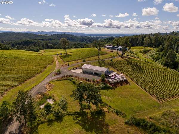 Welcome to this stunning 62 acre opportunity in Oregon Wine country located in the Yamhill Carlton AVA! Enjoy the tranquility and beauty of Carlton, with rolling hills, panoramic vineyard vistas and easy access to the region's cherished wine trail! Estimated 23.71 acre planted vineyard, buyer to verify. Outstanding views, Cascade Range, Mt. Hood and Mt. Jefferson plus the Coastal Range, will take your breathe away whether you are on the deck, in the vineyard or sipping a glass of award winning wine on the patio! Nestled in the picturesque hills of Carlton, this remarkable property offers the ultimate blend of luxury and rural living, 2083 sq. ft. winery with a 398 sq. ft. estate tasting room facility, a wonderful crush pad and a well planned cold storage area. 946 sq. ft. of wine storage area. The 2828 sq. ft. poured concrete patio outside of the tasting room makes for a wonderful opportunity for potential wine tasting or other creative future ideas! The home features tasteful finishes, Euroline triple-pane windows and doors, spacious living space and spacious deck! Solar panels on the barn roof,and they only power the small barn. Property benefits from two wells, one of these wells is only seasonal. Two septic systems, one for residence and one for winery. Ponds on property. The estate wines have received numerous accolades including multiple gold medals and high ratings from prestigious publications such as Sip Magazine and Wine Enthusiast. Whether you're an established vintner or seeking a turnkey vineyard lifestyle,this property is a true gem in Oregon's wine country. Don't miss your chance to own a premier vineyard estate in one of the Willamette Valleys desirable locations! Buyer to do all own due diligence and confirm all measurements themselves. Farm equipment, winery equipment and tasting room equipment is negotiable.