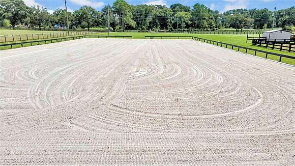 For equestrian enthusiasts, the property boasts a new, 100 x 200 all-weather arena with perimeter rails and a built-in watering system, making it perfect for training and riding year-round. Three fully fenced pastures with high-quality three-rail no-climb fencing. There are also two open barns totaling four stalls, each with corner feeders. Additional outbuildings include a feed and tack barn with a wash rack to accommodate all your equestrian needs. Beautiful Spanish Moss-draped oaks surround the property, adding charm and tranquility to the landscape. This property also presents many opportunities for horse enthusiasts, with the potential to create the barn of your dreams and set up paddocks. Additionally, you will have recorded access to the extensive Florida Greenway trail system, providing convenient riding access to the nearby Florida Horse Park! This Central Florida estate offers an unparalleled opportunity to experience luxury living, privacy, and equestrian excellence. Do not miss the chance to make this exceptional property your own!