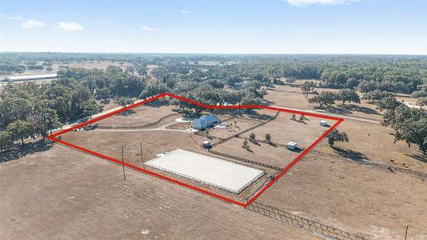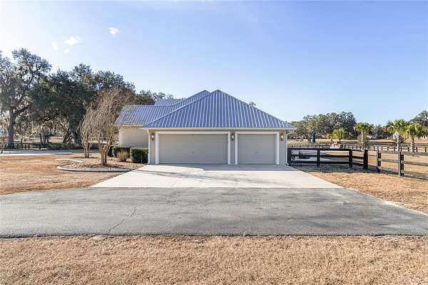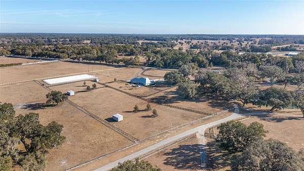 Welcome to over 10 pristine acres in the heart of Ocala's premier horse country, where luxury living meets exceptional equestrian functionality. Privately tucked behind a custom electric gate and winding drive, this stunning 2016 custom-built estate offers privacy, beauty, and purpose at every turn.