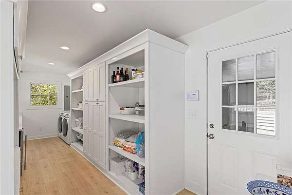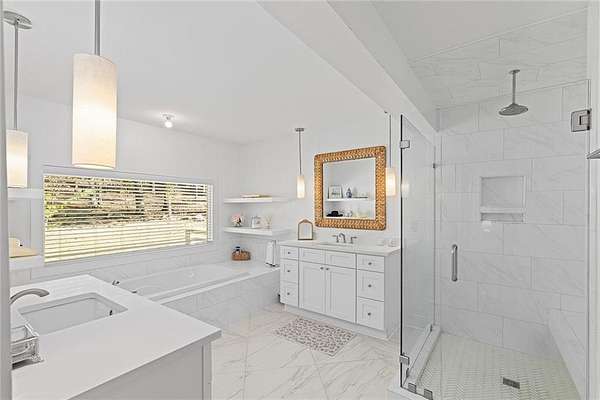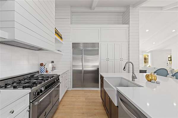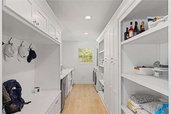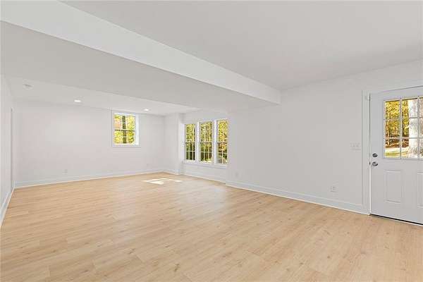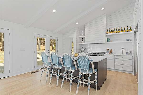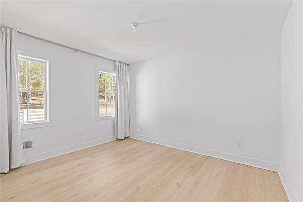 Welcome to 12005 Hamilton Road- a luxurious farmhouse fully renovated and updated from the inside out. Stepping into this charming home, you will be delighted with the beamed vaulted ceilings, open living floor plan and abundant natural light. Just beyond the living area with custom bookshelves, a perfect home office with double doors, vaulted ceilings and natural light is the perfect place to work from home. The kitchen and dining area features 3 sets of French doors providing natural light and ease of entertaining from the living area to the expansive back deck. The kitchen is fully upgraded with custom cabinetry, quartz counters, farmhouse sink, a 48" Bertazzoni gas range, Sub-Zero refrigerator/freezer, open shelving and shiplap walls. The mud room/laundry room is spacious and fully outfitted with custom shelving and cabinetry and provides a door to the two-car garage. Down the hall, the owner's suite is spacious and the spa-like bathroom offers a frameless glass step-in shower with a bench, a soaking tub with tile surround and floating shelves, two vanities and a separate water closet. The other 3 guest bedrooms on the main level are roomy and have access to two additional bathrooms- each with upgraded finishes. The finished daylight-basement offers the perfect extra living space with a bedroom area, full bath with step in shower, and full kitchenette with farmhouse sink, refrigerator/freezer, dishwasher and electric range. The lower level also features a separate laundry room. A large unfinished area is easily accessible and perfect for all of your storage needs. Outside, immerse yourself in quiet nature with beautifully landscaped spaces in the front yard with native shrubs and trees, in the rear of the home, the beautiful landscape boulders separate the grassed yard from the wooded area beyond with soaring hardwood trees. A separate gravel driveway approaches a charming barn- perfect for entertaining or storage! Don't miss your opportunity to live on your private retreat- just minutes from the Serenbe wellness community, 20 minutes from Atlanta's Hartsfield Jackson Airport, and 30 minutes to downtown Atlanta!