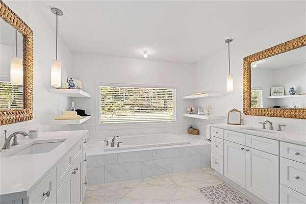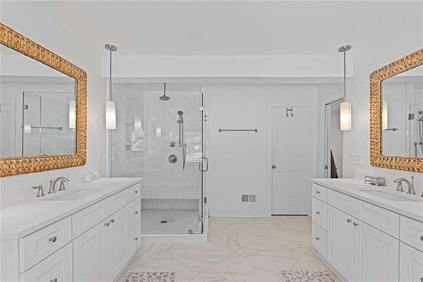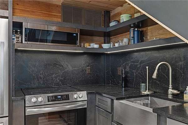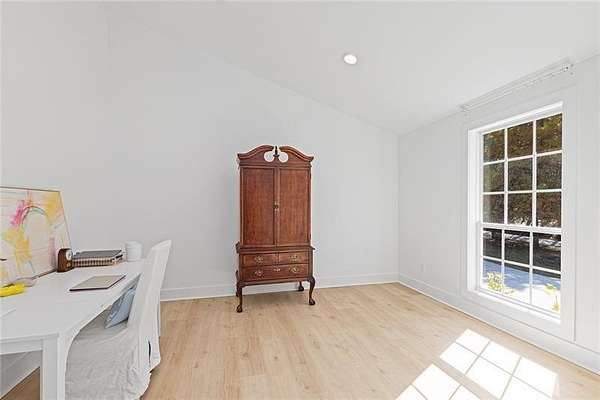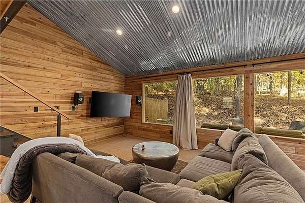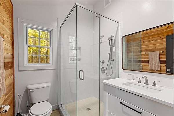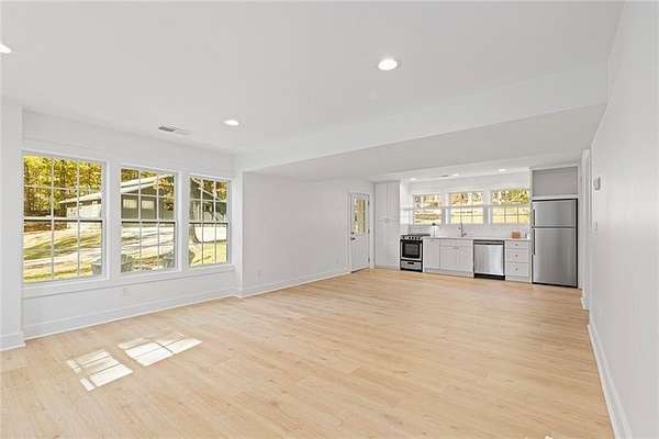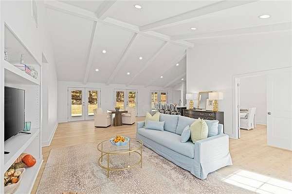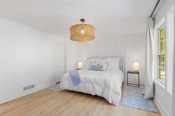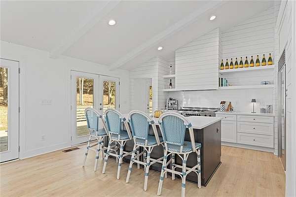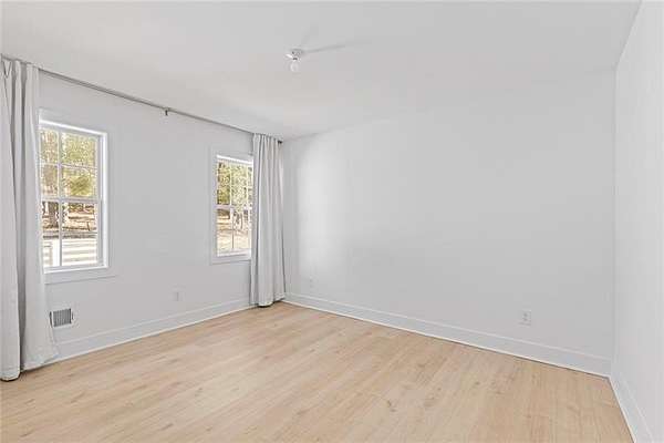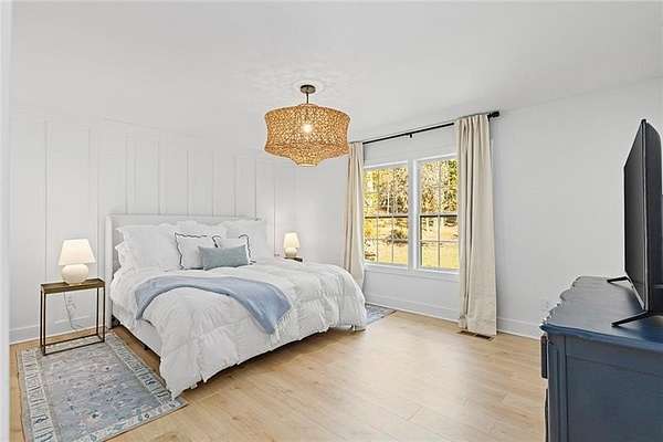 Welcome to 12005 Hamilton Road- a luxurious farmhouse fully renovated and updated from the inside out. Stepping into this charming home, you will be delighted with the beamed vaulted ceilings, open living floor plan and abundant natural light. Just beyond the living area with custom bookshelves, a perfect home office with double doors, vaulted ceilings and natural light is the perfect place to work from home. The kitchen and dining area features 3 sets of French doors providing natural light and ease of entertaining from the living area to the expansive back deck. The kitchen is fully upgraded with custom cabinetry, quartz counters, farmhouse sink, a 48" Bertazzoni gas range, Sub-Zero refrigerator/freezer, open shelving and shiplap walls. The mud room/laundry room is spacious and fully outfitted with custom shelving and cabinetry and provides a door to the two-car garage. Down the hall, the owner's suite is spacious and the spa-like bathroom offers a frameless glass step-in shower with a bench, a soaking tub with tile surround and floating shelves, two vanities and a separate water closet. The other 3 guest bedrooms on the main level are roomy and have access to two additional bathrooms- each with upgraded finishes. The finished daylight-basement offers the perfect extra living space with a bedroom area, full bath with step in shower, and full kitchenette with farmhouse sink, refrigerator/freezer, dishwasher and electric range. The lower level also features a separate laundry room. A large unfinished area is easily accessible and perfect for all of your storage needs. Outside, immerse yourself in quiet nature with beautifully landscaped spaces in the front yard with native shrubs and trees, in the rear of the home, the beautiful landscape boulders separate the grassed yard from the wooded area beyond with soaring hardwood trees. A separate gravel driveway approaches a charming barn- perfect for entertaining or storage! Don't miss your opportunity to live on your private retreat- just minutes from the Serenbe wellness community, 20 minutes from Atlanta's Hartsfield Jackson Airport, and 30 minutes to downtown Atlanta!