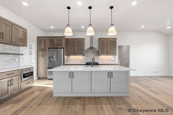 Photos of a Previous similar build Estimated June completion on this beautiful new construction home by Sunset Homes in Bell Pasture! This thoughtfully designed ranch-style floor plan offers over 2,100 sq. ft. on the main level with 3 bedrooms plus an office, stunning open-concept living, and high-end finishes throughout. The kitchen features Schroll cabinets, hardwood floors, quartz countertops, and seamless flow into the spacious living and dining areas—perfect for both entertaining and everyday living. The fully finished garden-view basement with two large additional bedrooms with walk in closets, a full bath, and generous living space: bringing the total to 5 bedrooms, 3 bathrooms, plus a dedicated main-level office. The huge 4-car garage completes the package. With over 2,100 sq. ft. per level, this home offers exceptional value in the desirable Bell Pasture subdivision. Enjoy Paved roads, natural gas and high speed fiber internet to the home and just a few minutes north of town.