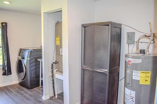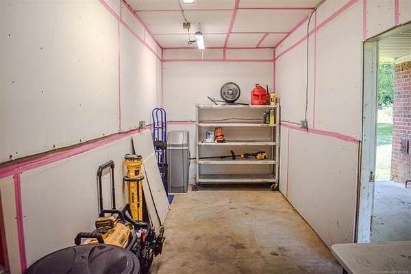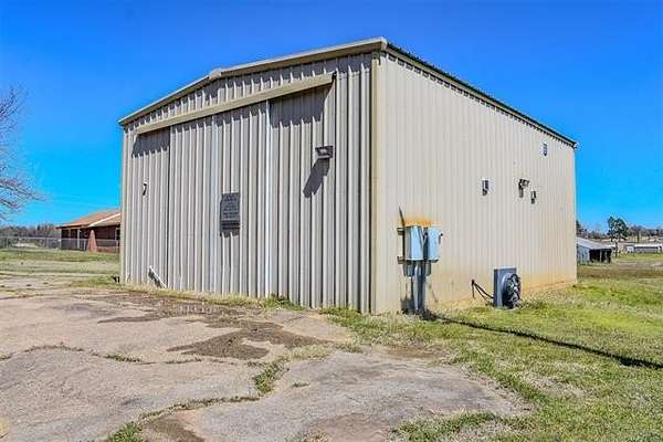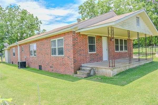 Take a look at this home on a 4.73 acre +/- corner lot in a great location just outside of Hugo. The home is 2,432 square feet (per Choctaw County tax assessor) Seller believes it is less, Buyer to verify if of concern. This property comes with a 30x40 metal building that comes equipped with 400 amps of power, spray foam insulation, air conditioning, heat, and dehumidification! The brick home is a 3-bedroom 1.5 bathroom in good condition with a carport and added storage room and has 200 amps of power running to it. The bedrooms currently do not have closets but have room to install them where needed. Additional inclusions to the sale of the Property are a new range and range hood, new electric water heater, new washer and dryer, and a 2022 Bad Boy Maverick HD 48" zero turn mower all at no additional cost! Ask agent for further details. Call today to schedule a private showing! Cash or conventional financing only. Home needs foundation repairs. Home is sold As-Is, Where-Is with inspections to be completed prior to offer acceptance per Seller request.