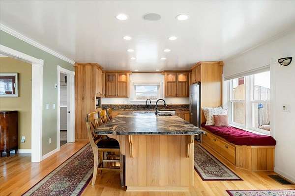 - Built-In Desk, Built-In Hutch, Bull Nose Corners, Custom Cabinets, Double Sink, French Doors, Granite Counter Tops, Kitchen Island, Prep Sink, Shower Enclosure, Tile Counters, Tile Enclosure, Tile Floors, Tub/Shower Enclosure, Undermount Sink, Vaulted Ceilings, Walk-In Closet