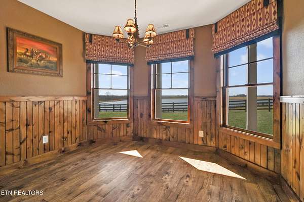 32 Acres beautiful acres that has 4 board fencing. The acreage is cross fenced into separate pastures for ease of rotation. Expansive, well maintained 17 acre private pond with dock. (for a total outdoor space of 49 acres) You can easily float, have your Jon boat, kayak or canoe to comfortably enjoy our long Tennessee summers. Mature landscaping surrounds home, with ease of maintenance. Enjoy the quiet peace of ''country living'' and soak up the beauty of the mountains from your farm.
