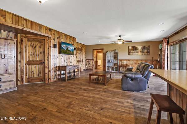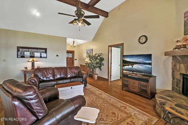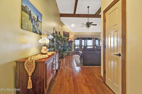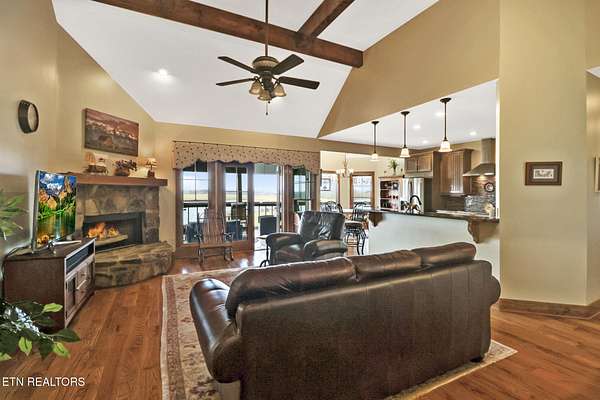 For those looking for a horse property that will ''check all your boxes''. This one is it! The home is a craftsman style, custom built showplace offering its new owner 3898 sprawling feet with views from every window....The home was thoughtfully designed with 4 spacious bedrooms each with access to one of the 4 full bathrooms. The living room with a fireplace has views of the mountains, pastures and private 17 acre lake. The kitchen is open to the living area for ease of conversation or entertaining. There is ''storage'' around every corner. All bedrooms and laundry room are located on the main floor with the exception of the one bedroom and bathroom that is downstairs in the recreation area... There is a pool table that will convey, and the space downstairs is perfect for those moving to Tennessee with extended family. Home offers an oversized two car garage with a lift. Outside of the home you will find a screened in deck with an outdoor fireplace to enjoy the fireflies through the summer, and the crispness of those beautiful fall nights...A patio area and 2 additional porches...Decking to enjoy the sunsets and sunrises over your lake, and to watch your horses graze in the fields...A 3 stall barn with HEATED tack room, wash stall for convenience, hay storage area that holds 150 square bales is just a short walk from the home. On the lake you will find a dock, beach area and plenty of room to store and launch your water recreation equipment.