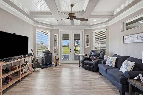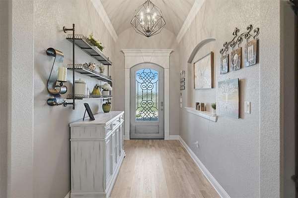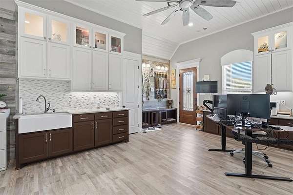 Welcome to Luxury Living in The Peninsula where Elegance, Comfort, and Thoughtful Design come together on nearly two Beautifully Maintained Acres inside a Private Gated Community near Lake Granbury. This stunning home immediately captivates with soaring ceilings and an abundance of natural light that fills every space, creating a bright and inviting atmosphere. Designed with both everyday living and entertaining in mind, the heart of the home is a true dream kitchen featuring high-end finishes, a kitchenette providing extra counter space, and custom cabinetry throughout allowing ample space for gathering with family and friends. A Beautiful Custom-Built Addition completed in 2020 features its own private entrance, an office or craft room space with custom working areas, built-in craft cabinets, custom built-in dog crates, and a secondary primary bedroom and bath featuring two private bathroom and vanity spaces. The thoughtfully designed floor plan offers flexibility and privacy perfect for multi-generational living or hosting guests in style. Step outside to experience seamless indoor and outdoor living where gorgeous window doors open wide to the outdoor patio off the enclosed outdoor living area, complete with a cozy fireplace and inviting space perfect for year-round enjoyment. A custom designed outdoor kitchen overlooks the peaceful backyard, creating the ultimate setting for entertaining under the Texas Sky. With its prime location near Lake Granbury, expansive acreage, and gorgeous custom features throughout, this exceptional property offers the perfect blend of privacy, sophistication, and luxury. Schedule your private showing Today and experience it for yourself.