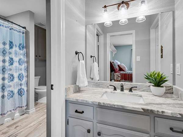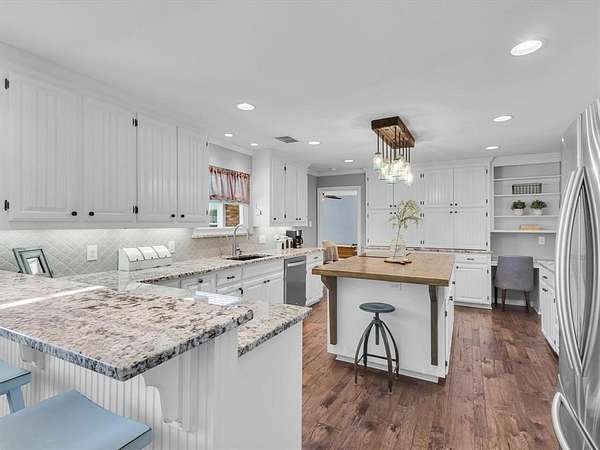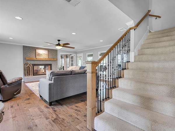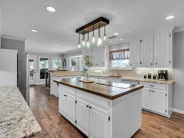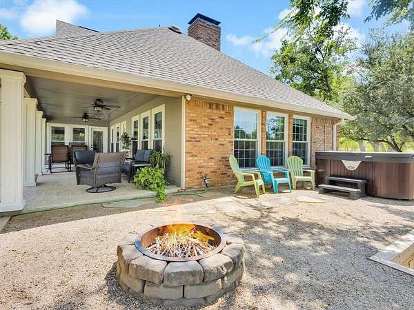 Tucked away on a peaceful 2.8-acre lot in the heart of Wylie, this updated Southern-style home offers the perfect blend of charm, privacy, and modern comfort. From the moment you arrive, the circle drive and welcoming front porch invite you to experience all that this exceptional property has to offer. Enjoy the freedom of wide open space, complete with rolling terrain, mature shade trees, two private swim-friendly ponds, and a 1,700 sq. ft. workshop, perfect for hobbyists, car enthusiasts, and beyond. Inside, you'll find a beautifully maintained home with engineered hardwood flooring, two spacious living areas separated by a cozy double-sided fireplace, and a thoughtfully updated layout designed for everyday living and entertaining. The chef-inspired kitchen is a true showstopper equipped with a KitchenAid convection oven, under-mount lighting, granite counter-tops, a unique 1930's refurbished box car island with wood top, and an abundance of cabinetry and pantry space. The first-floor primary suite offers a private sanctuary with a luxurious ensuite bath, complete with double vanities, a large walk-in shower with dual heads, and two walk-in closets. A wrought-iron staircase leads to the second floor with two bedrooms sharing an updated Jack & Jill ensuite bath. Step outside to your own backyard paradise. Unwind on the covered patio with space for outdoor dining, roast s'mores around the firepit, or soak in the 6-person hot tub while enjoying serene views of your private landscape. Kids will love spending summers swimming in the two private ponds. The possibilities are endless with the 36x48 workshop with an attached porch and sliding doors. Quiet location with a country feel and city conveniences, feeding to Wylie ISD, with nearby highways including 78 and PGBT, boutique shopping, Landon Winery, and walking trails. This location and home is not to be missed! Exclusive Lender Incentive for Financing.