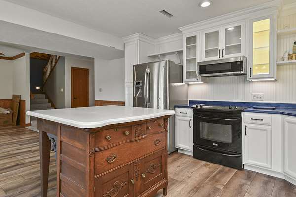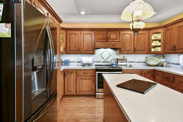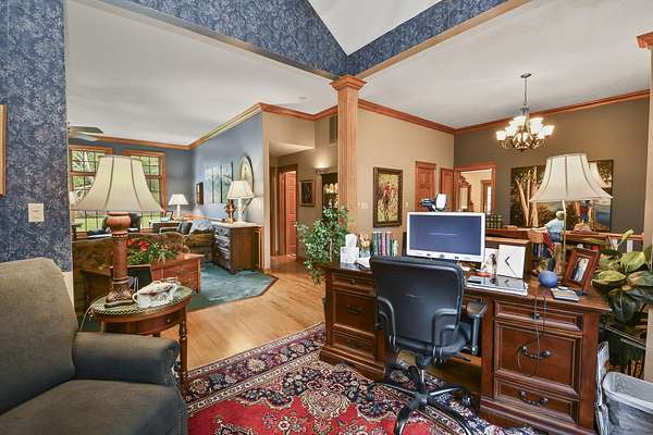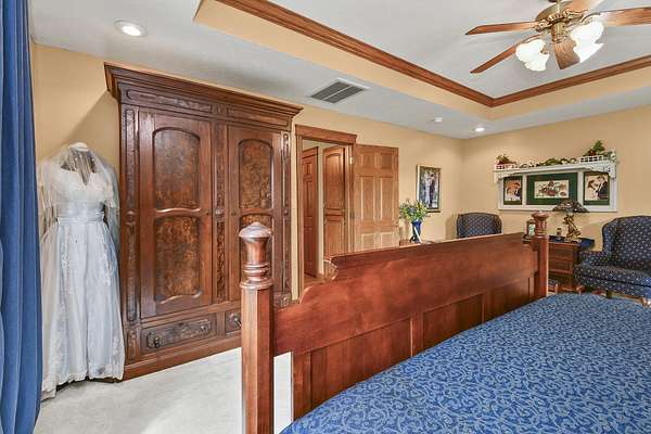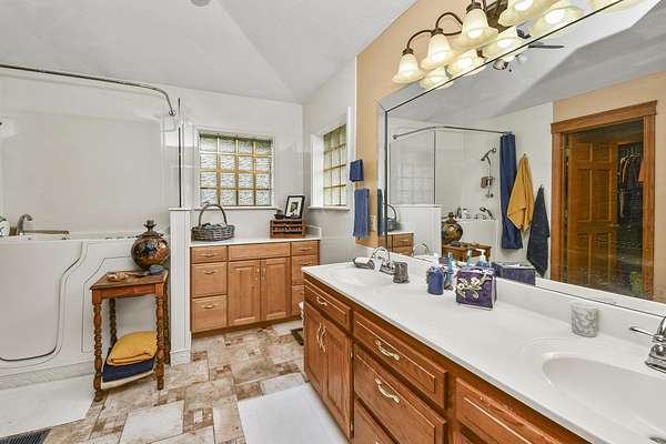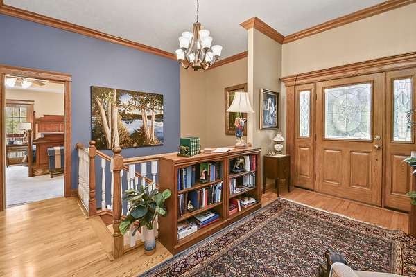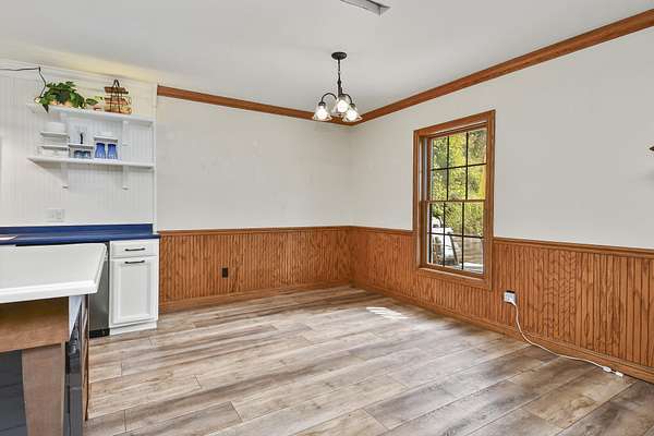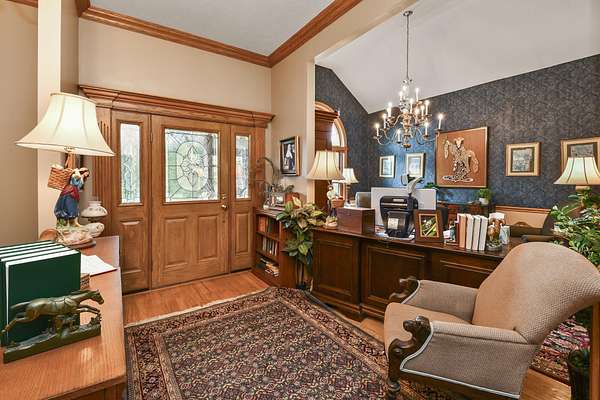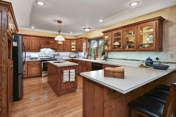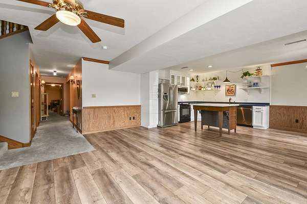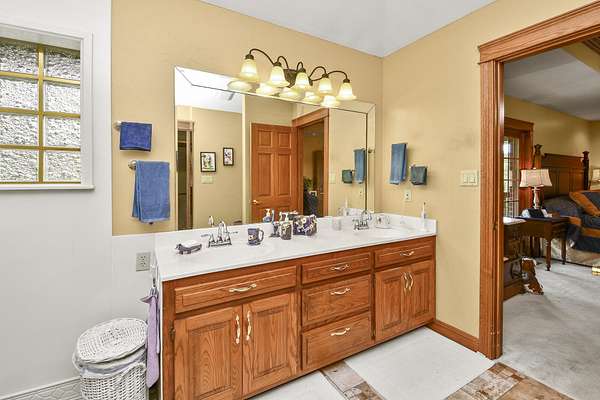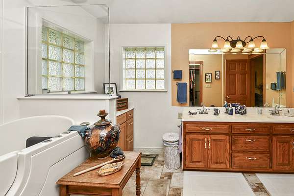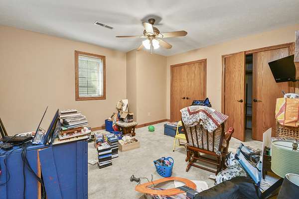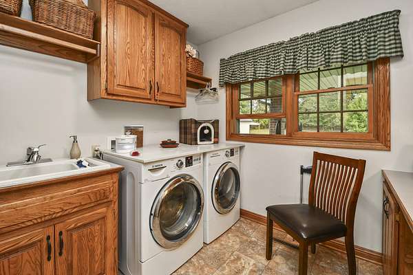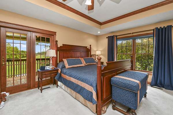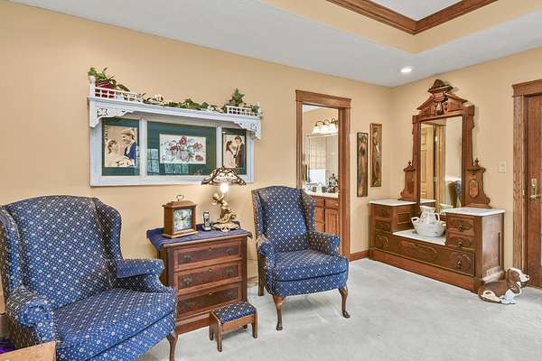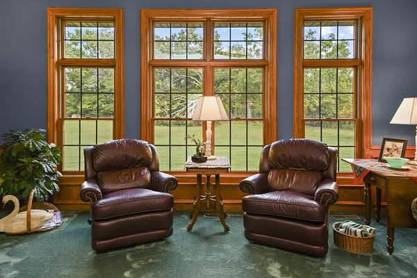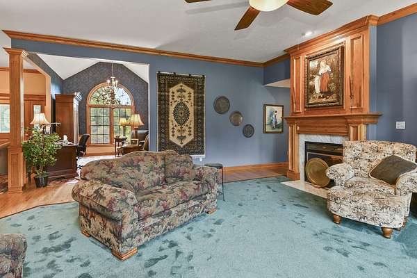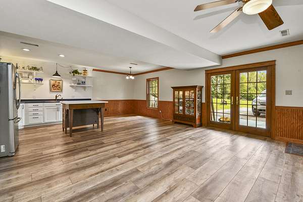 Find your next home in this lovely secluded all brick house on ten acres just minutes from town. Drive into a parklike setting of majestic trees, open fields, privacy and quiet. The kitchen is a lighthouse of warmth with a wealth of convenient roll out shelves and plenty of counter top on island and over bar area. The large Living Room has beautiful crafted ash wainscoting, crown molding, wall to wall windows with a see through gas fireplace to the hearth Room. From there doors open to a large covered porch. The primary bath and bedroom has French Doors to a covered deck with a panaromic view of the propery. The first floor also has another full bath and bedroom. Leaving the wood covered floor of the dining room and foyer, go downstairs to a great room with wood burning stove in fireplace, kitchen with double sink, dishwasher, stove, fridge and ample dining area. There are three more large bedrooms and tons of closets and a full bathroom plus an extra large room for play, crafts, storage, etc. All is easily accessed by a driveway to the large patio and walk-out doors. Not only does the house have a three car attached garage but a 30x40' concrete floor building. Add your loved ones to call it