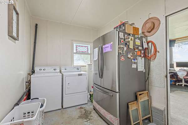 - Ceiling Fan, Concrete Floor, Laundry, Soaking Tub, Vinyl Floor