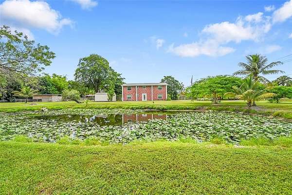Est $11,292/moRare opportunity to own 2 acres in sought-after Plantation Acres. Property includes a 4BR/2.5BA Colonial-style home with newer roof and impact glass (2022), plus a 1BR/1BA in-law suite with private entrance, kitchen, and living room ideal for guests Spacious open floor plan with oversized primary suite featuring en-suite bath with soaking tub. Lot can be subdivided into two parcels, with second water meter already in place. Build your dream estate, develop two custom homes, or renovate the existing residence. Landscaping includes pond and avocado, banana, black olive, and oak trees.