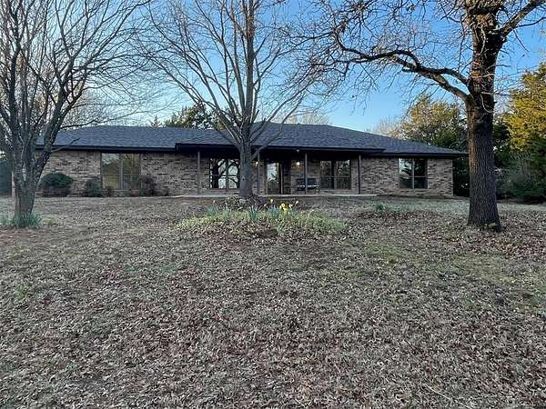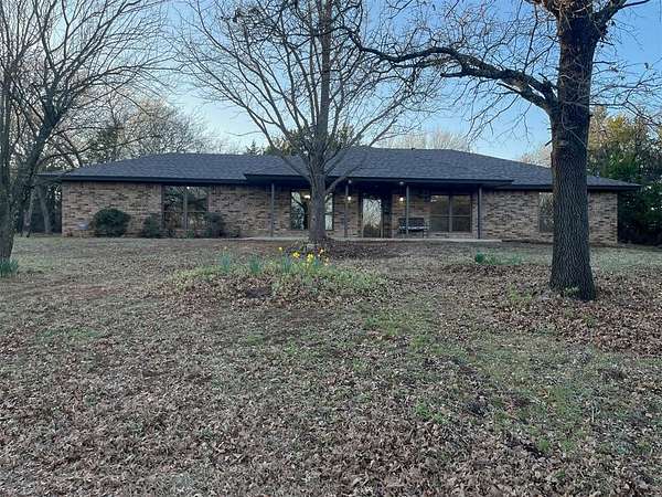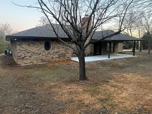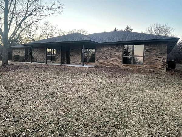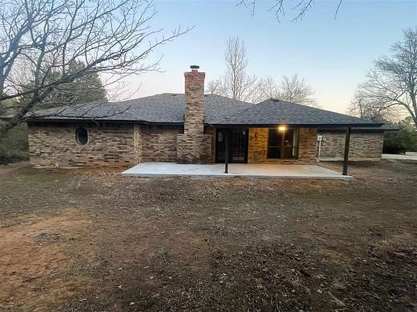 Welcome to scenic and peaceful living on 5+ lovely acres! This beauty nestled in the native trees is a beautiful place to call home! Lots of Light! New windows and nice views! Originally built with quality construction and craftmanship in mind, now thoughtfully renovated so you can move in and enjoy! One Super-size living room with built in Bookcase and enough space for all your comfortable furniture; great for family or entertaining! New stainless steel kitchen appliances include electric stove with steam clean oven, over the range microwave, new ss dishwasher, granite countertops, new tile backsplash, composite sink with matte black faucet. new vinyl e-z clean windows; New flooring is carpet in bedrooms and living room and LVP flooring through kitchen and dinette and front flex room space or formal dining room! New roof; newly poured concrete for the Covered back patio is 33 x 11! New lights fixtures. Sliding barn doors for extra privacy to the master bathroom to be installed. A Special place to explore, walk the land and find the big covered carport or pavilion, and other unique treasures! Outside, the possibilities are wide open. With five acres of land, there's space for a shop, animals, a garden, outdoor entertaining, or simply enjoying quiet Oklahoma sunsets and the privacy that comes with country-style living. All of this in a peaceful setting with convenient access to Harrah just a mile away and easy access to Oklahoma City. It can be yours, come look and fall in love!