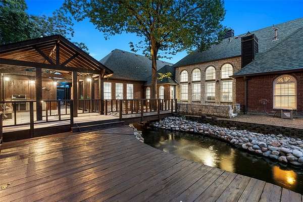 PRICE DROP on this beautiful creek side property. No HOA! Hidden gem in the heart of Garland, TX -- a spacious 6,515 sq ft estate nestled on a serene 1.89-acre lot near the vibrant Firewheel area. Offering unmatched privacy and natural beauty, this property is ideal for multi-generational living, a private residence, or a potential income-producing VRBO, Airbnb. Step inside to find 4 bedrooms and 4 bathrooms, with a layout designed for comfort and flexibility. The expansive kitchen opens to a sunlit living area and breakfast nook, all with stunning views of the peaceful creek and mature trees. The primary suite is a luxurious retreat featuring its own fireplace, spa-like bath with jetted tub, and oversized closets. A private guest suite on the main level adds convenience, while the impressive 1,600 sq ft great room offers endless possibilities -- complete with a stone fireplace, spiral staircase to a loft with breathtaking creek views, and space for an office or future living suite. Entertainment and wellness abound with a game room, fitness room, media room, and ample storage. The oversized 3-car garage features porcelain tile flooring and a large driveway for extra parking. Outdoors, enjoy a spectacular 14,000-gallon koi pond with a charming bridge and deck with built-in gas grill -- perfect for gatherings. A separate backyard oasis includes a sparkling pool and spa. Located with easy access to Plano, Richardson, Murphy, Wylie, Rockwall, and major highways to downtown Dallas, this PROPERTY offers the perfect blend of tranquility and convenience.