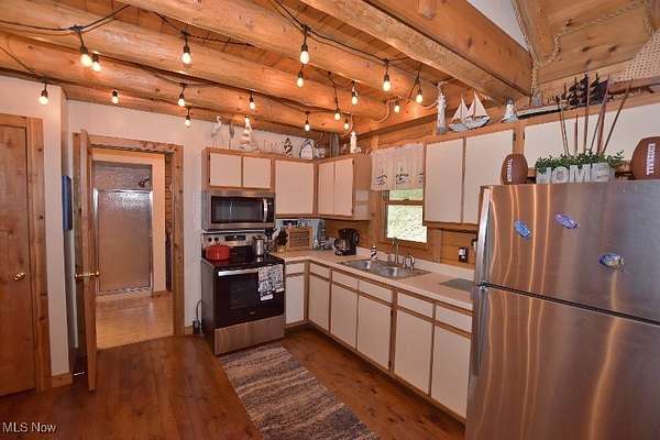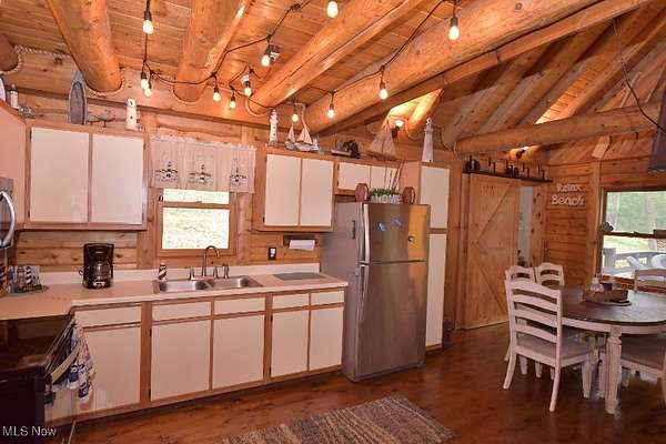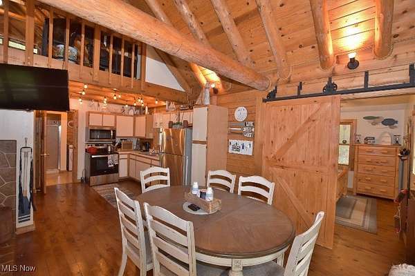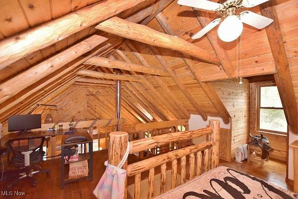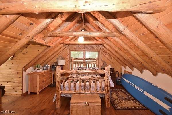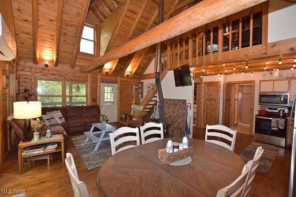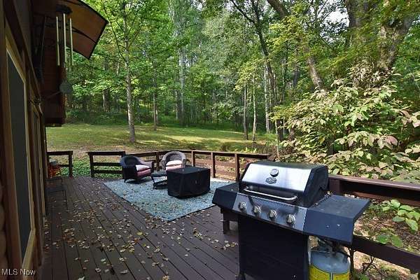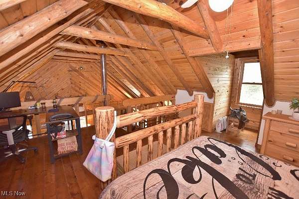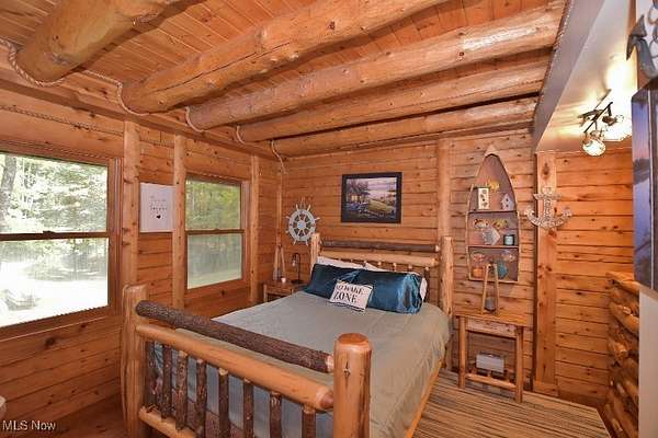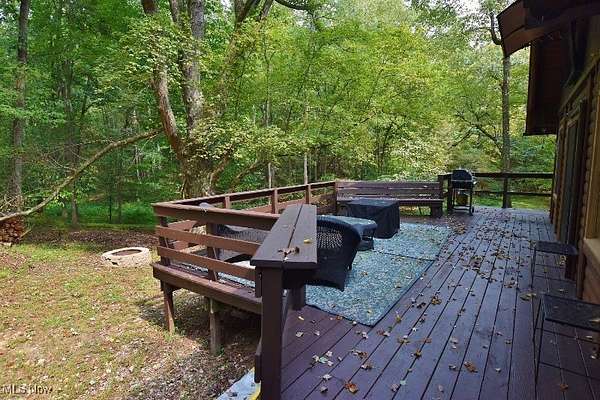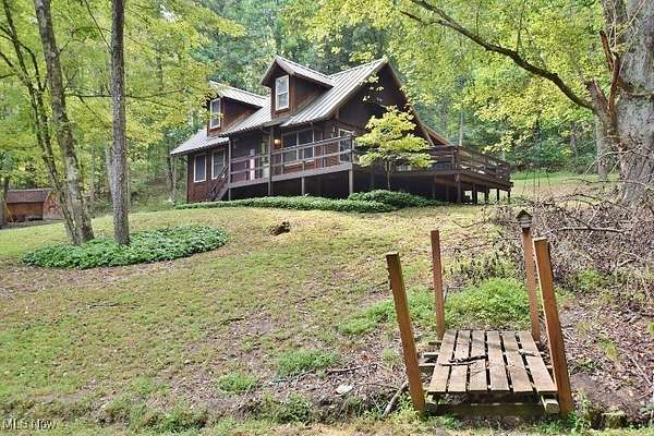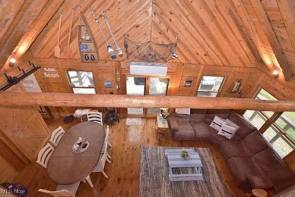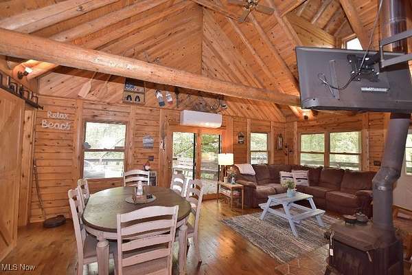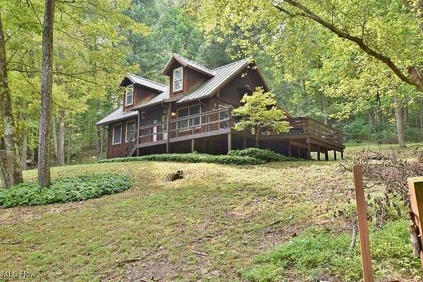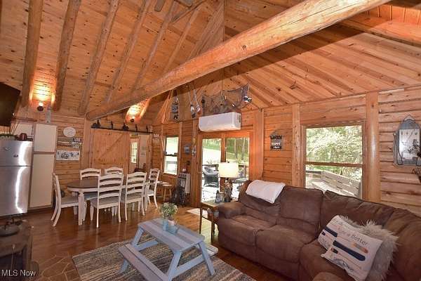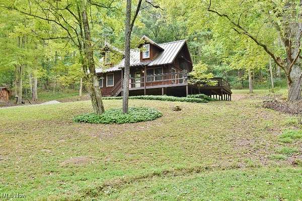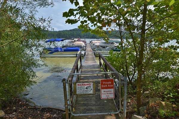 The best of both worlds awaits with this 3-bedroom log-sided home, ideally situated on 8.56 wooded acres yet only 1/2 mile from 1540 acre Atwood Lake and can easily be walked. A private dock slip is included, giving you easy access to explore all 1,540 scenic acres of the lake. In fact, now included with the home is a 22.5 foot 2012 Aqua Patio pontoon boat with a 2011 Yamaha 25HP motor making even more of the perfect turn key oppotunity! Nestled in the desirable Whispering Pines community, this property also adjoins 120 acres of Muskingum Watershed public hunting land, offering endless outdoor recreation. This turnkey home is being offered fully furnished and beautifully decorated-just bring your clothes and groceries to start enjoying your retreat. The main floor boasts an open-concept layout with natural wood flooring, a great room with soaring vaulted, beamed ceilings, and a cozy wood-burning stove. Two bedrooms, a full bath with laundry, and a spacious loft overlooking the great room (perfect as a third bedroom and office) provide plenty of living space for your family and friends. Step outside to a wraparound deck overlooking a large yard, complete with an outdoor TV for entertainment. Outdoor enthusiasts will appreciate the three tree stands and feeders that remain with the property. Additional highlights include a storage shed with two mowers, a new mini-split heating and cooling system, a metal roof (2017). Propane wall heater in addition to the mini split system and wood stove. Spectrum high-speed internet and cable available. With no neighbors in sight yet so close to Atwood Lake, this property offers unmatched privacy, tranquility and entertainment. Immediate occupancy is available at closing. Schedule your personal showing today and don't miss the 3D virtual tour!