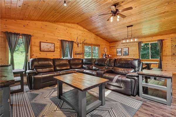 Enjoy the perfect blend of comfort, style, and space in this beautifully furnished, 3 bedroom, 3 bath home set on nearly 10 acres just minutes from Hayward. With a modern rustic feel throughout, this inviting property features a large main-level master suite, spacious open living areas, and warm, tasteful finishes that make it truly move-in ready. There is also some finished family room or extra sleeping space in the lower (walkout) level as well. The expansive backyard offers plenty of room to relax or entertain, surrounded by the beauty and privacy of nature and mature forest. A 3-car garage provides ample storage for vehicles, toys, or workshop needs. Whether you're looking for a permanent residence or a peaceful Northwoods retreat, this property offers the best of both worlds-convenience and serenity. Note: Seller recently purchased the property, but pressing family matters caused them to pursue job opportunities in another state. All furnishings and decor included.