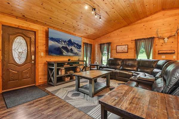 Beautifully furnished 3BR/3BA home on nearly 10 private acres just 5 minutes from Hayward. Warm and inviting with a modern-rustic feel, this property offers a spacious main-level primary suite, open living areas, and nearly 2,500 sq ft of comfortable living space. The walkout lower level features a finished family room plus additional sleeping space for guests or flexible use. Mature trees create a peaceful Northwoods backdrop, while the expansive backyard provides plenty of open space to relax, play, or entertain. Large private deck/patio area offers room for outdoor seating, gatherings, or a future hot tub. The 3-car garage provides excellent storage for vehicles, tools, and recreational gear. Gravel driveway off Hwy 63 allows easy access, and great internet service adds convenience for full-time living or weekend escapes. Plenty of room for a future pole barn or garden. Furnishings and decor included, making it easy to move in and start enjoying right away. Set in a beautifully wooded setting with both privacy and usable outdoor space, this property offers the kind of flexibility that can be hard to find. Whether used as a full-time residence or a Northwoods getaway, there is room to spread out, host family and friends, enjoy the outdoors, and make the property your own for years to come.