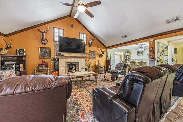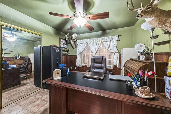 - Breakfast Bar, Cathedral Ceilings, Ceiling Fans, Home Office, Kitchen Island