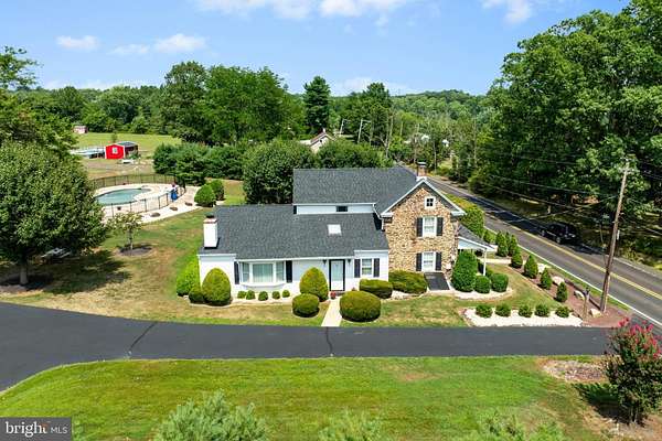 Introducing "Stone Meadow Farm," circa 1825. A classic Bucks County farmhouse on more than 7 scenic acres, offering the character and setting of a true gentleman's farm-ideal for horses, livestock, or simply enjoying the rhythm of country living. The historic stone residence has been thoughtfully expanded to include a spacious fireside living room along with a convenient main-floor primary suite and laundry. Original character blends comfortably with the practical touches that make everyday living easy. Outside, the property captures everything people imagine about life in the countryside. Summer afternoons by the in-ground pool, family picnics under open skies, and autumn gatherings in the hayloft where bobbing for apples becomes a tradition. The classic bank barn provides stalls and generous storage, while a separate garage/shed offers additional flexibility for equipment, hobbies, or workshop space. All of this sits in a peaceful Bucks County setting just minutes from Doylestown with convenient access to Route 309, and within the well-regarded Pennridge School District. A wonderful setting for those drawn to a genuine farm-to-table lifestyle.