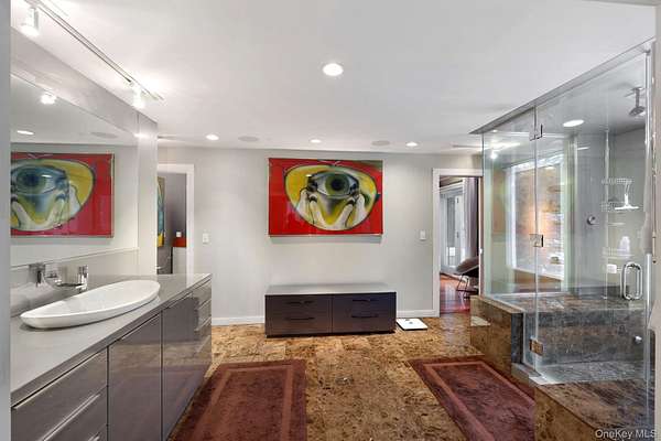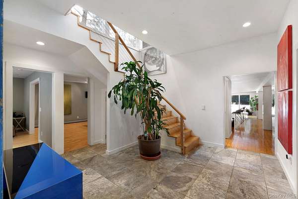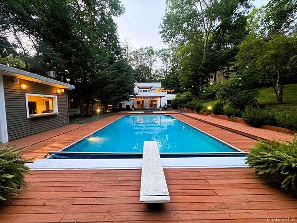 Welcome to an exceptional waterfront retreat in the heart of Red Hook, where refined design meets effortless lifestyle. Nestled along the serene Roe Jan Kill as it winds through your backyard, this remarkable residence offers picturesque water views and a setting that feels both private and inspiring. Living like a three-bedroom home, the layout is thoughtfully designed with generous proportions, seamless flow, and an abundance of natural light. The interiors blend modern sophistication with curated character - featuring updated appliances, beautifully renovated bathrooms, and a striking industrial Garland stove that anchors the chef's kitchen with both presence and performance. Multiple decks invite you to take in the tranquil surroundings, entertain under the stars, or enjoy morning coffee overlooking the water. Fireplaces add warmth and ambiance throughout, creating inviting spaces in every season. The primary suite is a true sanctuary, highlighted by a spa-inspired bathroom complete with a luxurious, modern steam shower - a daily indulgence designed for relaxation and renewal. Beyond the main residence, a detached studio and office space offer incredible flexibility - ideal for an art studio, photography workspace, creative retreat, or private guest quarters. A two-car garage provides added convenience and functionality. The outdoor amenities elevate this property to a resort-like experience. A sparkling pool is complemented by an expansive pool house featuring a commercial-grade stove, snack bar, and changing room - thoughtfully designed for effortless entertaining and unforgettable summer gatherings. A rare offering where lifestyle, luxury, and location converge - this Red Hook waterfront retreat is truly one of a kind.