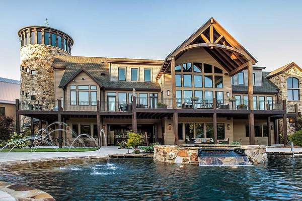 Experience the extraordinary 60-acre estate, offering a truly unique living environment. With stunning craftsmanship, including reclaimed wood floors and beams, the home exudes the charm of a private resort nestled in the heart of the Ozarks. The Mitsubishi Geothermal heating and cooling system, combined with foam insulation, ensures that this expansive property-spanning approximately 16,000 square feet-remains one of the most energy efficient homes in Missouri. This exceptional residence features 6 bedrooms, 7 full baths and 2 half baths, two full kitchens, three laundry rooms, a workout room and a theatre room. The professionally designed chef's kitchen is both functional and luxurious, featuring a high-performance gas range with a pot filler for effortless cooking. Dual dishwashers provide maximum cleanup efficiency-ideal for entertaining or larger family meals. A built-in icemaker ensures you are always ready for cocktails or cooling drinks on demand. Ample granite counter spaces, large island, premium cabinetry, and a thoughtful workflow layout make this kitchen a dream. Not to mention the large walk in pantry with tons of custom shelving and second refrigerator. The one-of-a-kind custom four story tower adds a distinctive architectural statement and unmatched functionality. Each level offers unique entertaining spaces, including a stylish bar and lounge ares, culminating in a stunning lookout tower with panoramic views-perfect for sunset gatherings, or simply enjoying the surrounding landscape. Designed with comfort and functionality in mind, the bunk wing sleeps up to 16. Each side features its own private room, and the wing includes its own small kitchen and laundry room, along with two bathrooms. The outdoor amenities include a heated waterfall pool with zero entry, slide and hot tub creating an atmosphere that feels like a perpetual vacation. There is SO much more to discover in this remarkable home. Schedule your private showing.