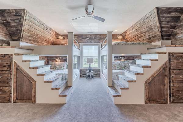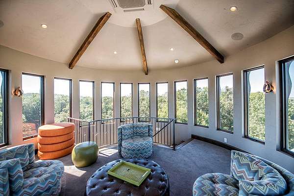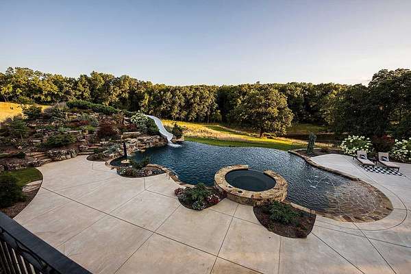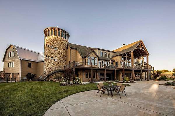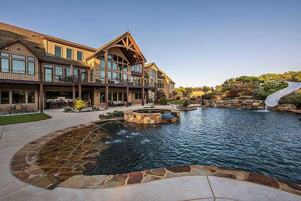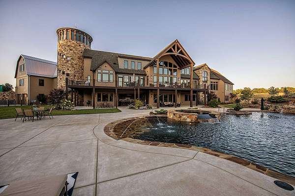 Experience the extraordinary 10-acre estate, offering a truly unique living environment. With stunning craftsmanship, including reclaimed wood floors and beams, the home exudes the charm of a private resort nestled in the heart of the Ozarks.The Mitsubishi Geothermal heating and cooling system, combined with foam insulation, ensures that this expansive property-spanning approximately 16,000 square feet-remains one of the most energy efficient homes in Missouri. This exceptional residence features 6 bedrooms, 7 full baths and 2 half baths, two full kitchens, three laundry rooms, a workout room and a theatre room. The professionally designed chef's kitchen is both functional and luxurious, featuring a high-performance gas range with a pot filler for effortless cooking. Dual dishwashers provide maximum cleanup efficiency-ideal for entertaining or larger family meals. A built-in icemaker ensures you are always ready for cocktails or cooling drinks on demand. Ample granite counter spaces, large island, premium cabinetry, and a thoughtful workflow layout make this kitchen a dream. Not to mention the large walk in pantry with tons of custom shelving and second refrigerator. The one-of-a-kind custom four story tower adds a distinctive architectural statement and unmatched functionality. Each level offers unique entertaining spaces, including a stylish bar and lounge ares, culminating in a stunning lookout tower with panoramic views-perfect for sunset gatherings, or simply enjoying the surrounding landscape. Designed with comfort and functionality in mind, the bunk wing sleeps up to 16. Each side features its own private room, and the wing includes its own small kitchen and laundry room, along with two bathrooms. The outdoor amenities include a heated waterfall pool with zero entry, slide and hot tub creating an atmosphere that feels like a perpetual vacation. There is SO much more to discover in this remarkable home. Schedule your private showing