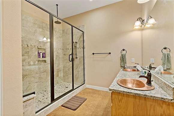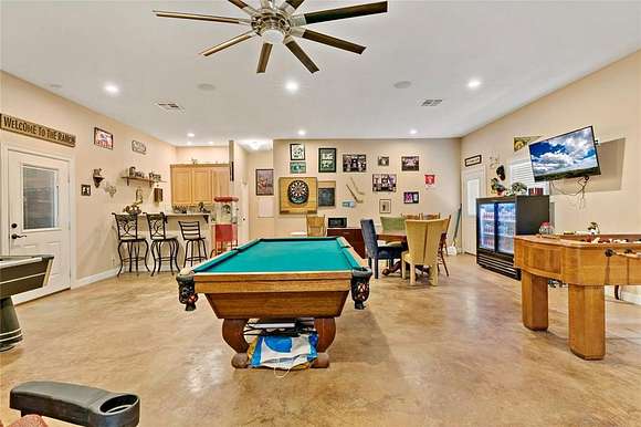 Discover the epitome of luxury in this custom-built 3,500 sq ft home, nestled on 53.125 acres of natural beauty. The open floor plan features a welcoming living area with a wood burning fireplace, while the gourmet kitchen impresses with granite countertops, commercial-grade appliances, dual dishwashers, an ice maker, and a butler's pantry. The master suite is a private oasis with a spacious walk-in closet, dual vanities, and a large shower. Entertain in style in the game room, complete with a wet bar, ice maker, and wine fridge, connected by a pull-through garage. A separate guest suite offers privacy and comfort. Enjoy wrap-around covered porches, a stocked pond, and a large shed perfect for storing your RV, ATVs, and more. The property also includes an unfinished 800 sq ft cabin, ready for your personal touch. Embrace a lifestyle of elegance and tranquility in this remarkable property.