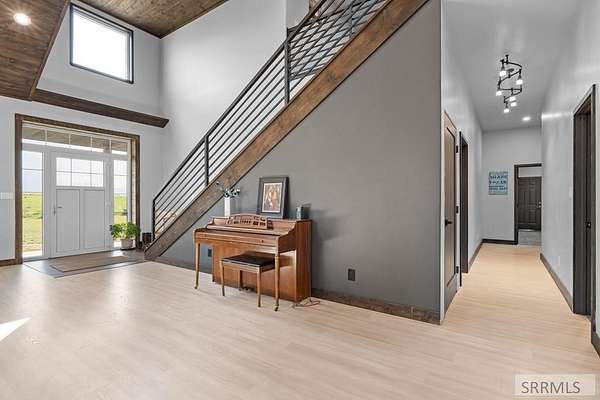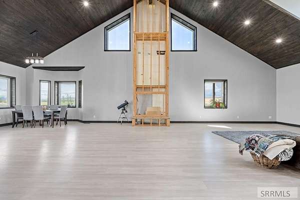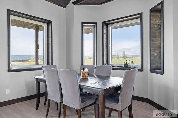 Nestled in the scenic Ririe/Heise area, this exceptional estate offers 360 views of farmland and mountains, unmatched privacy, and a rare blend of luxury living and income potential. The custom-built home features a spacious main-level master suite with double closets, a sunken tub, dual vanities, and double shower heads. The heart of the home is a chef's kitchen with granite countertops, a large island, double ovens, high end gas range, and a walk-in pantry-all opening into a great room with a yet-to-be-finished fireplace and a beautiful staircase leading to the 1,200 sq ft loft with a game room and half bath. The 4250 square foot shop includes two bays, a 16x60 RV overhang with full hookups, and a modern 4 bed, 2 bath apartment with kitchen, gas range, and laundry-renting as an Airbnb. The home sits beautifully on rural land with a classic wraparound porch-perfect for soaking in the peaceful Idaho surroundings. Whether you're looking for a private estate, multi-generational living, or a unique income-producing property, this exceptional rural retreat checks every box. Schedule your private tour today!