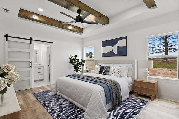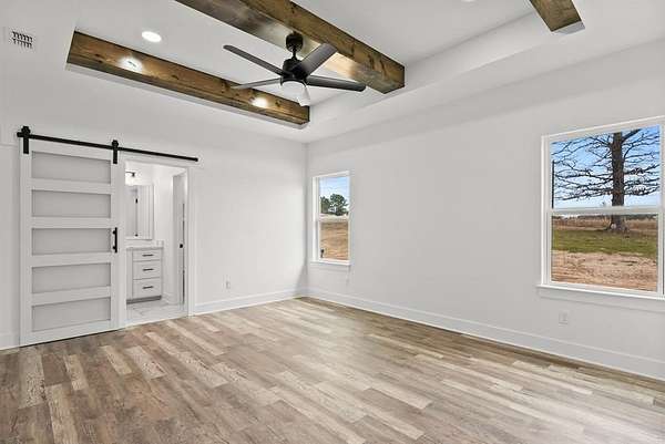 Come view thoughtfully built 3-bedroom, 2-bath home offers 1,776 square feet of comfortable, modern living on over 2 peaceful acres. Inside, the home feels light, open, and high end. Vaulted ceilings and generous windows fill the space with natural light, while the open-concept design creates an easy flow between the living room, kitchen, and dining area - perfect for gathering with family or enjoying a quiet evening at home. The kitchen is both beautiful and functional, featuring a large island for prep and conversation, quartz countertops, custom cabinetry, and durable vinyl plank flooring that carries throughout the main living spaces. The finishes are clean and timeless, creating a space that feels fresh now and for years to come. The primary suite offers a private retreat with plenty of room to relax, along with a well-appointed ensuite bath designed with comfort in mind. The additional bedrooms are spacious and versatile, ideal for guests, hobbies, or a home office. Bathrooms and the laundry area feature porcelain tile for durability and style, and the home’s exterior offers curb appeal that fits naturally into its countryside setting. With over two acres to call your own, you’ll have space for gardens, outdoor entertaining, future projects, or simply enjoying the quiet beauty of East Texas living. Situated just a short drive away from Brownsboro, Athens or Tyler, you'll always be close to all the best entertainment and dining this area has to offer. Schedule your showing today!
