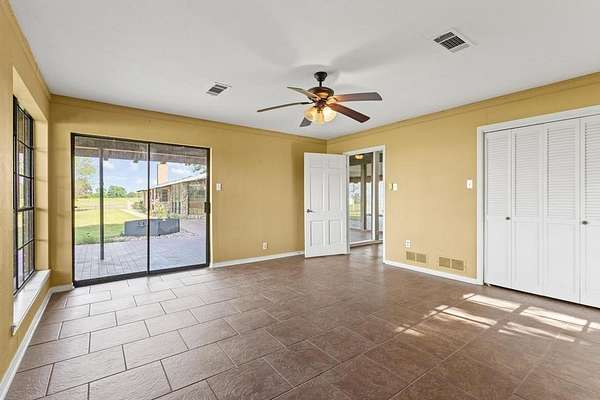 The primary ensuite is massive, with wall-to-wall windows capturing breathtaking views of the front lake. The oversized living room feels like a private lodge, with wall-to-wall windows and almost wall-to-wall stone fireplace. On the opposite side of the home, you'll find two additional bedrooms and bathrooms. Step out from the living area onto a covered back patio that overlooks the pond and pastures beyond.