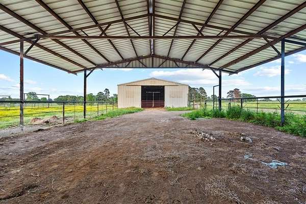 The land is fully fenced and livestock-ready, complete with cattle guards at both the front gate and the home's fencing. A large shop with a concrete floor and electric service is attached to covered corrals and working pens nearby. There's also a large dirt-floor pole barn for hay storage.