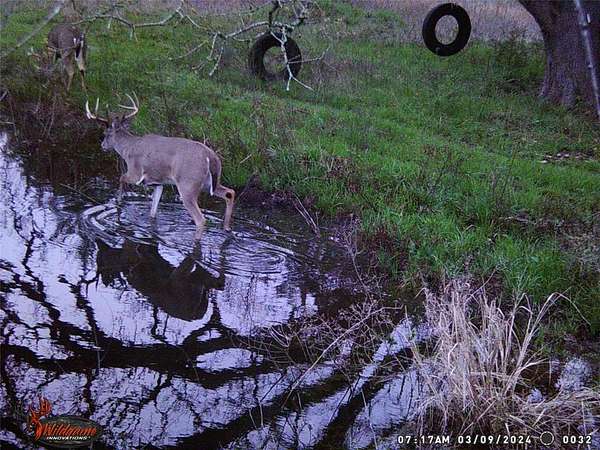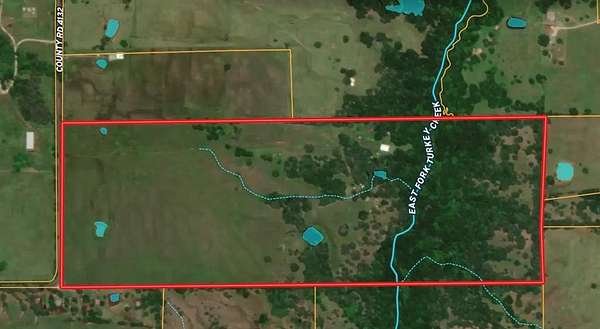 The land is cross-fenced with sandy loam soil and is well suited for cattle, horses, or other livestock. Features include three water sources, two ponds and additional water area, and a creek, providing excellent water access for livestock and wildlife.